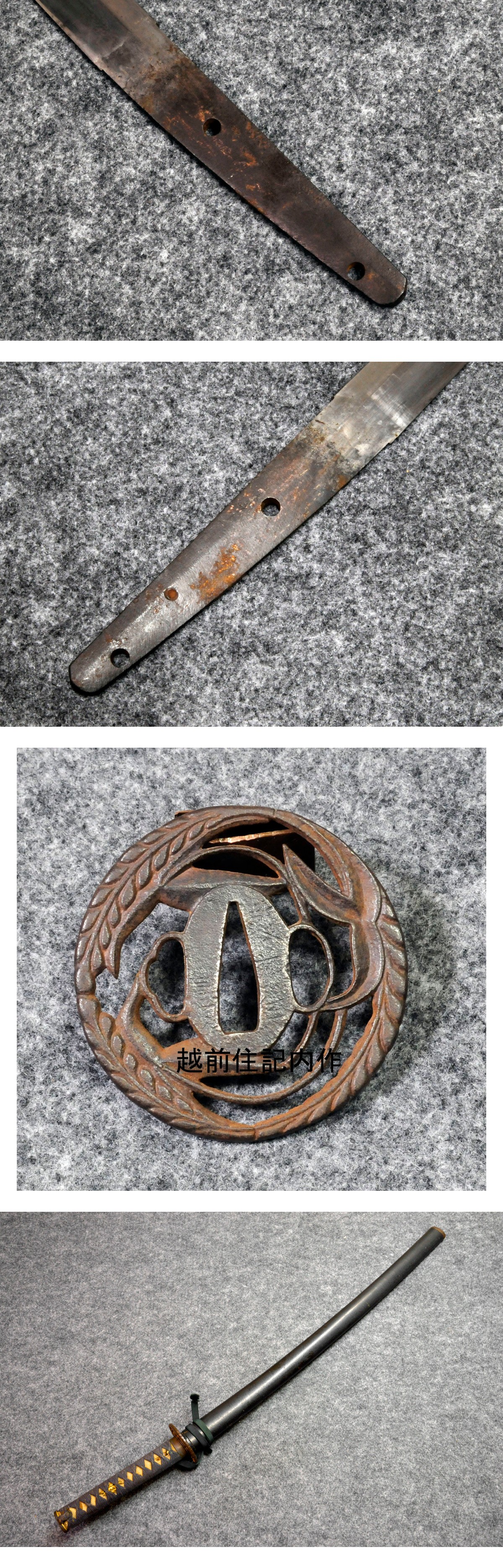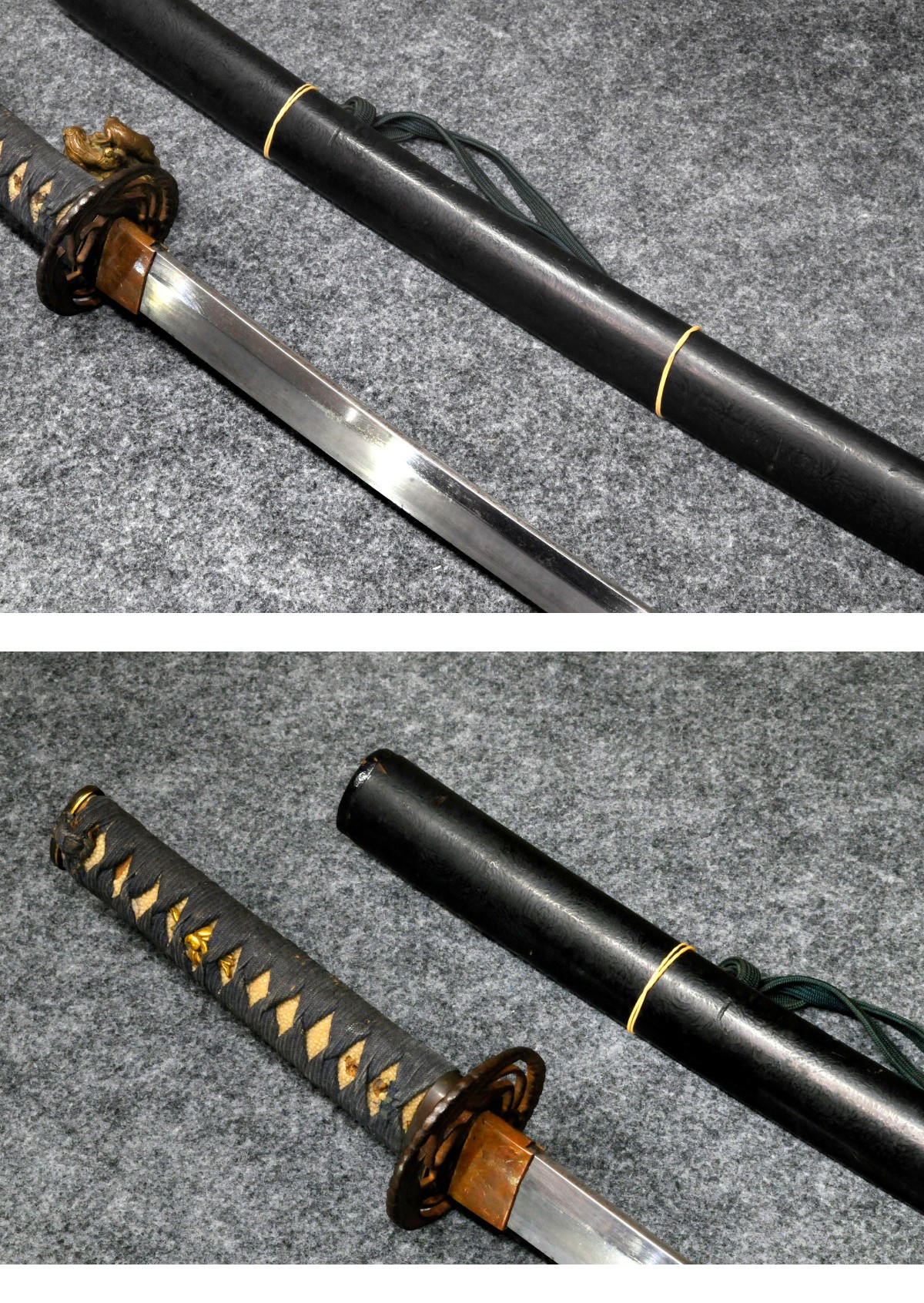 刃長:約56.7㎝反り:約1.2㎝刀重:約554g先幅:約2.0㎝元幅:約2.8㎝先重:約0.6㎝元重:約07㎝ 寸法はスケールを当てた約寸です。厳格な数値ではありませんので、参考値とお考え下さい。不明な点があば、入札前に質問してください。
