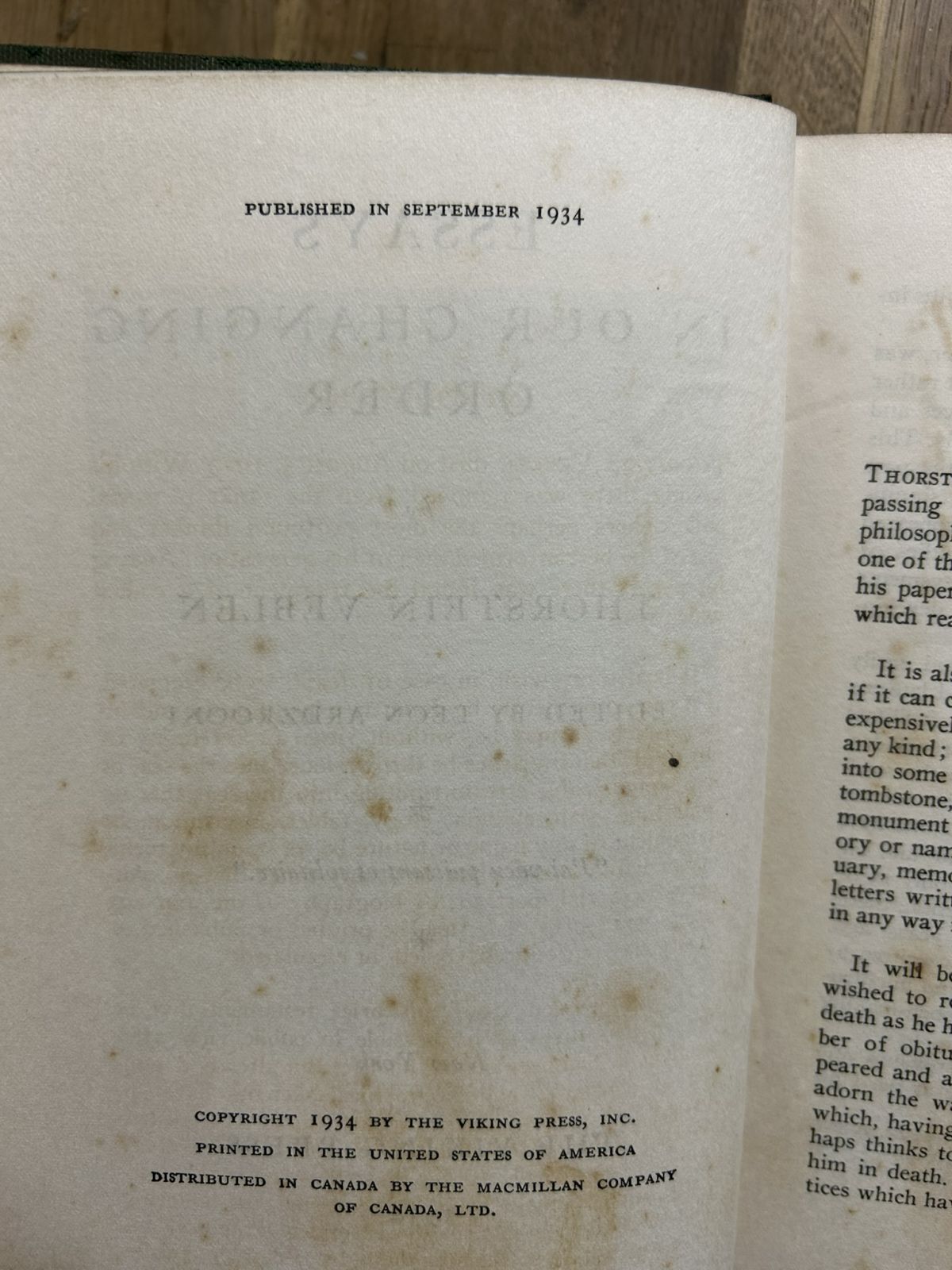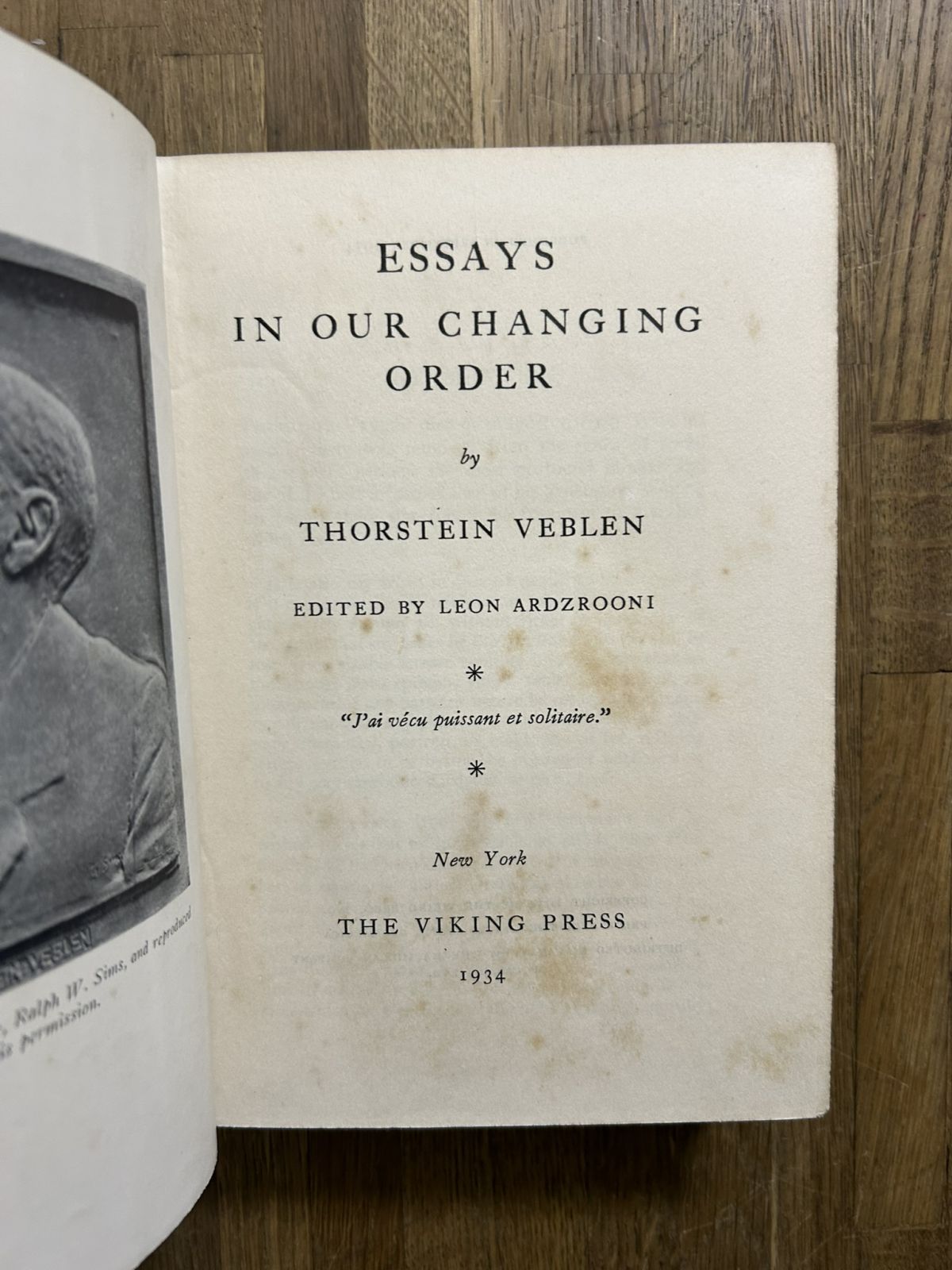 1934年初版 ソースタイン・ヴェブレン 変わりゆく秩序の中の諸論考 Veblen, Essays in Our Changing Order 英文洋書古書 收藏