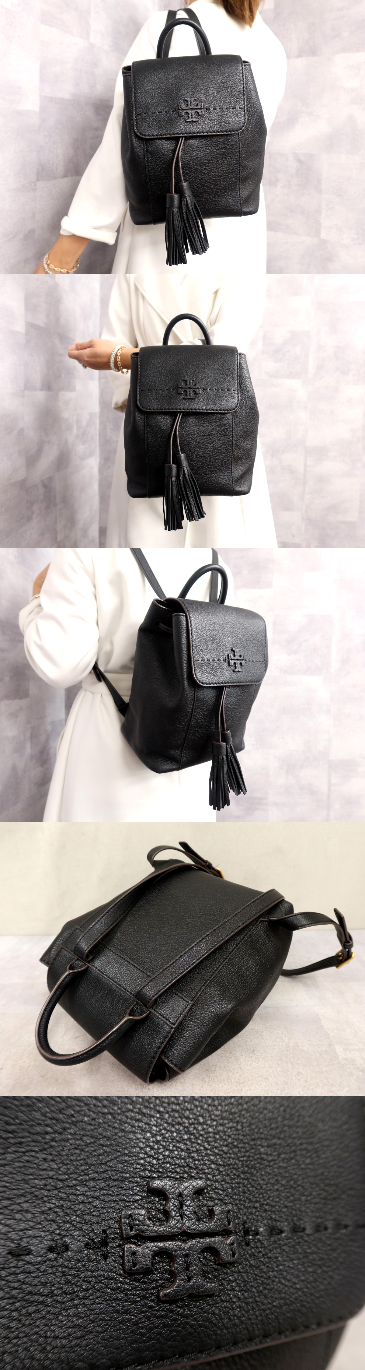 ●超美品●TORY BURCH トリーバーチ●マックグロー●タッセル●カーフ レザー 本革●リュックサック●黒●ゴールド金具●かばん●Js63004 收藏