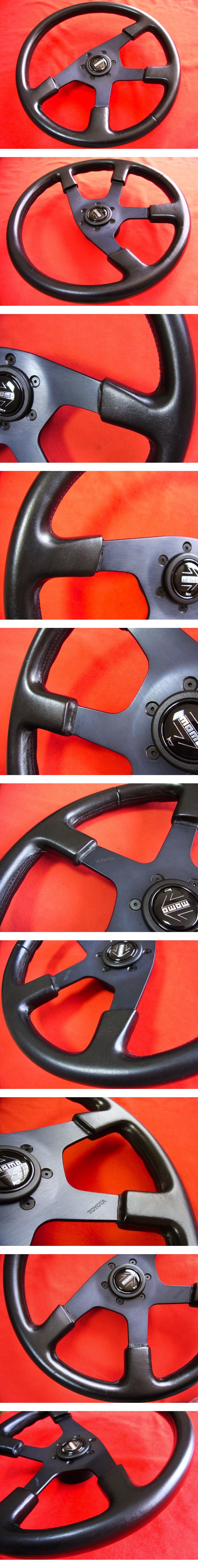 old momo steering wheel 36.5Φ 1pcs black leather seamless 1989 希少シームレス トヨタ刻印 toyota genuine product Celica supra MR2 收藏