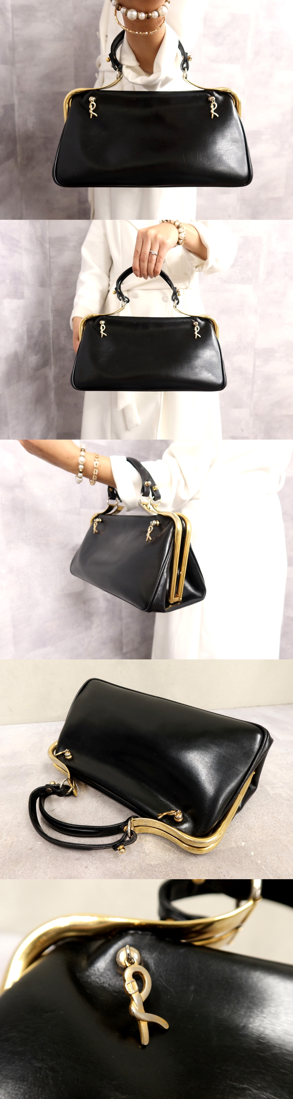 ●美品●Roberta di Camerino ロベルタ ディ カメリーノ●カラベラ●カーフ レザー 本革●ハンド バッグ●黒●ゴールド金具●収納●Js63367 收藏