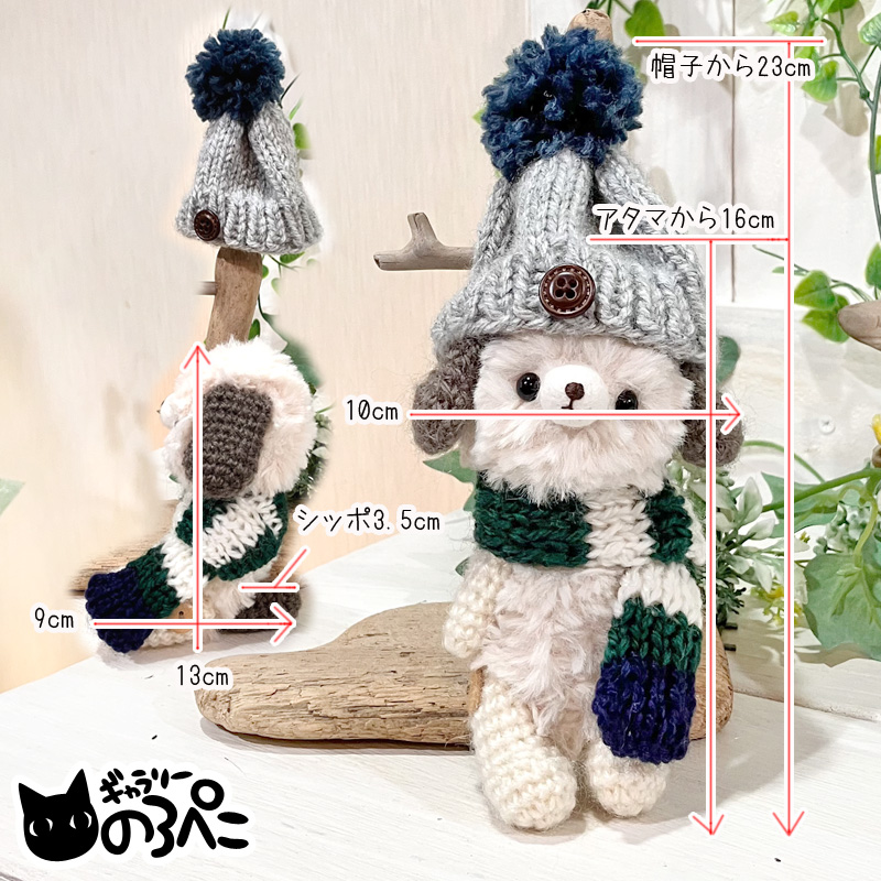 大きなニット帽のわんちゃん(ポンポン付きニット帽とマフラーで冬のおしゃれを楽しむ垂れ耳わんちゃんあみぐるみ) bc854-45 收藏