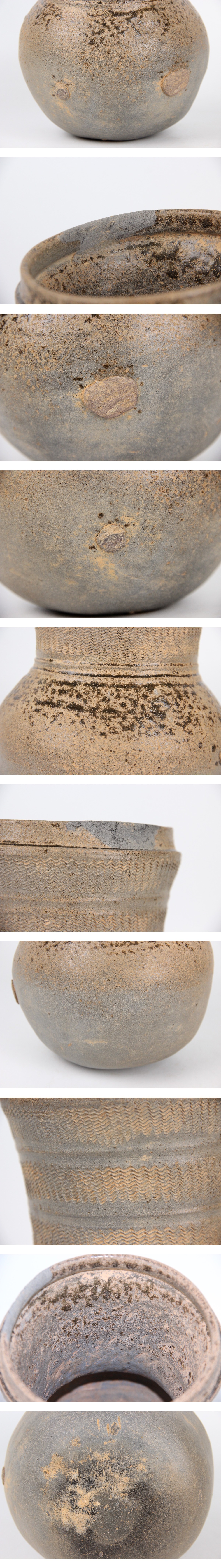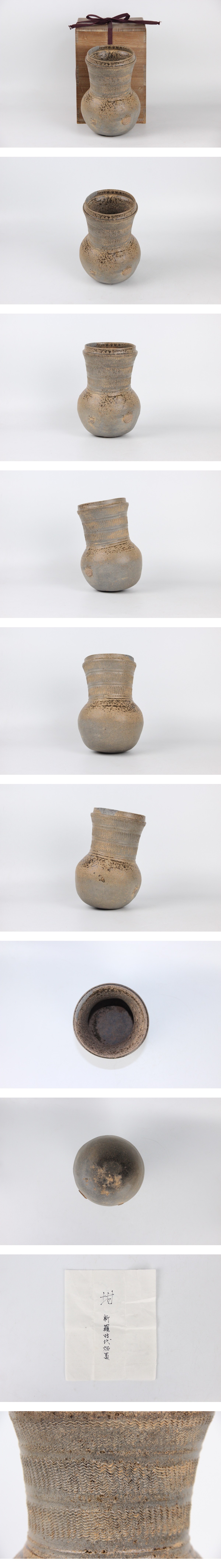 須恵器 長頸壺 時代 波文 広口 壺 土器 焼き締め 花瓶 新羅 高麗 古美術 箱付 ED11-25 收藏