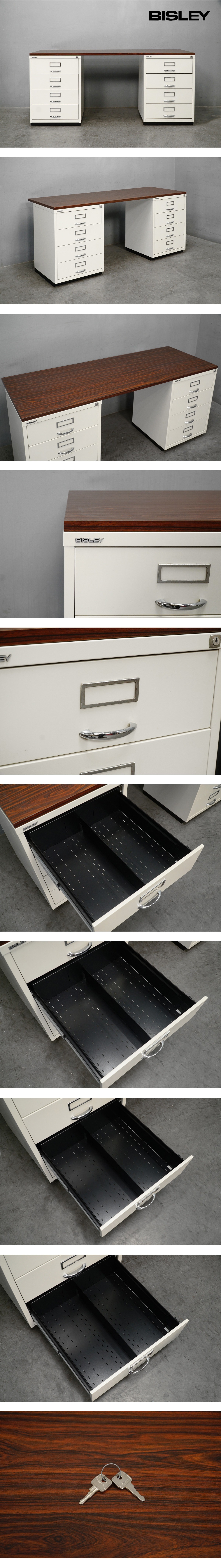 BISLEY(ビスレー) 両袖デスクセット F4 スチールキャビネット2台+天板 ワゴン 引き出し4段 希少廃番011219 收藏