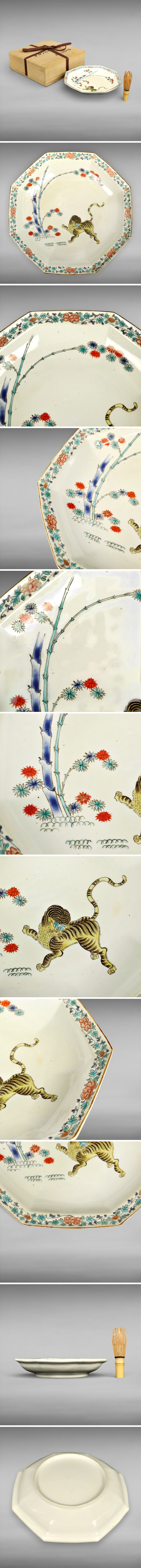 江戸初期~中期 伊万里焼 古伊万里 柿右衛門様式 八角皿 濁手 色絵竹虎図 箱 佐賀県 有田 古陶磁 古美術 骨董品 飾皿 600148vbcyN 收藏