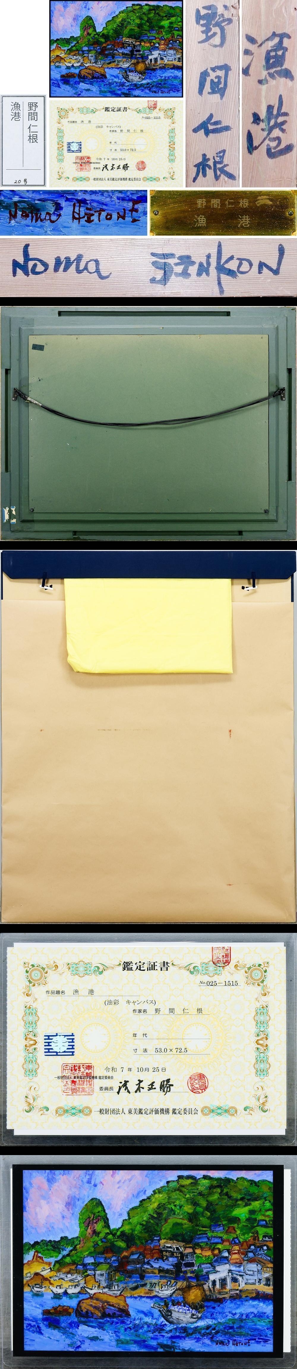 【真作】【WISH】野間仁根「漁港」油彩 約20号 大作 東美鑑定評価機構鑑定書付 ◆力強い筆致・色彩豊かな港町名画 〇物故巨匠 #25122381 收藏