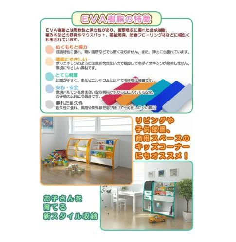 | 上段部分は、絵本や教科書、雑誌などの本収納としてお使いいただき、下段はおもちゃや勉強道具なども収納出来るフリースペースとしてご利用いただけます。縁周りには、クッション性に優れたEVAを使用。万一のお子様の転倒による衝撃や痛みを和らげる他、つかまる際も手に優しくフィットします。元気あふれるお子様をイメージした配色は、お部屋を明るく演出します。 ※本品は壁に付けて設置してください。 ※商品の色は、お使いのPCの環境によって実物と若干異なる場合があります。 |