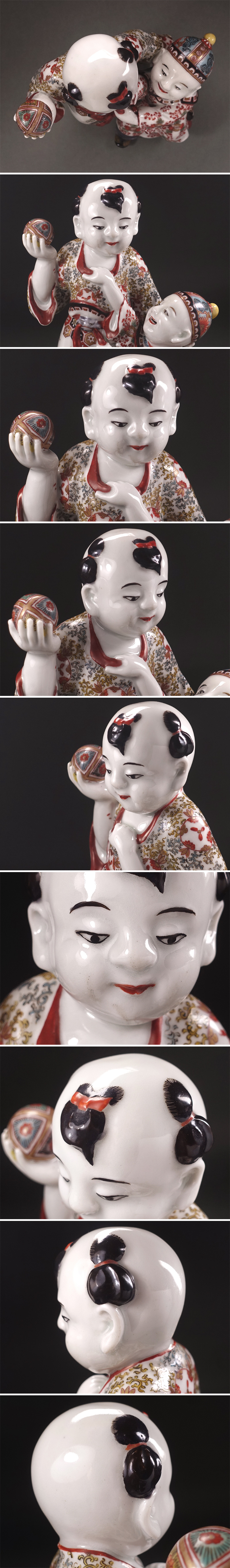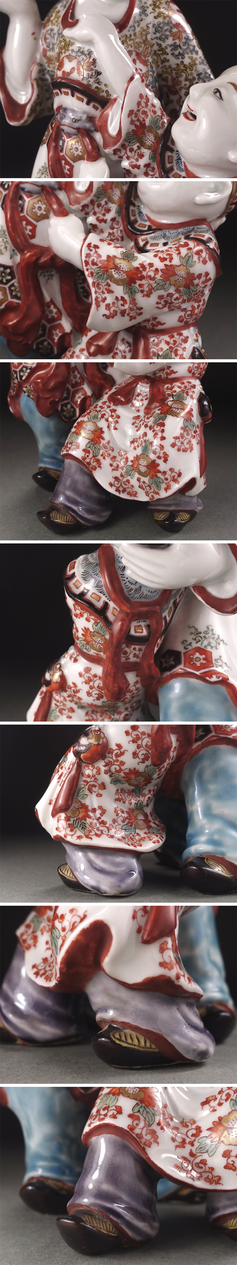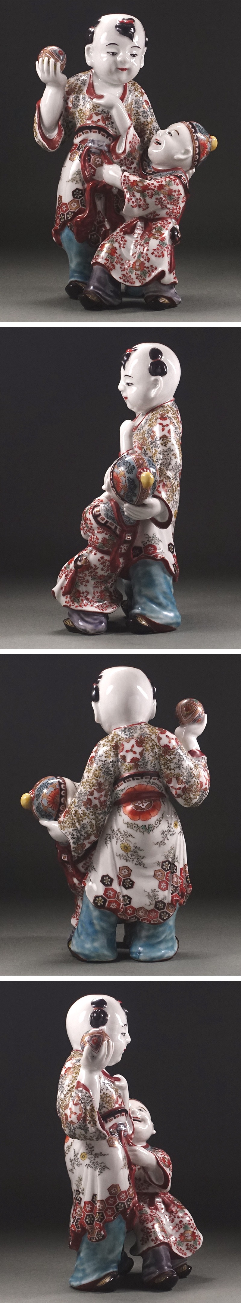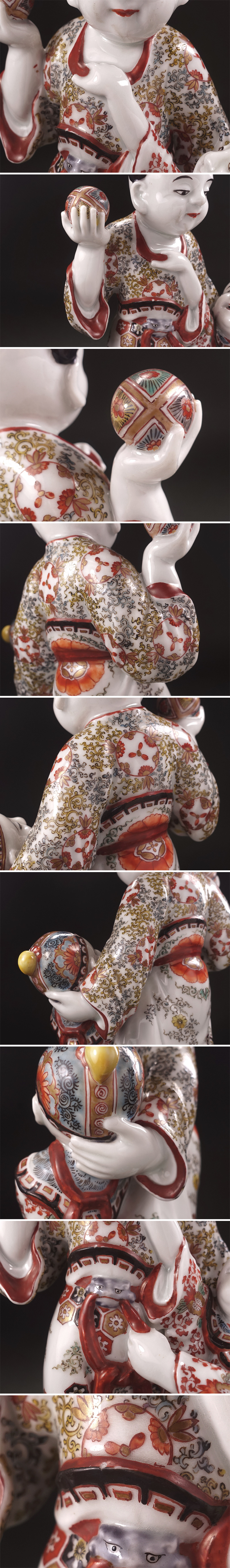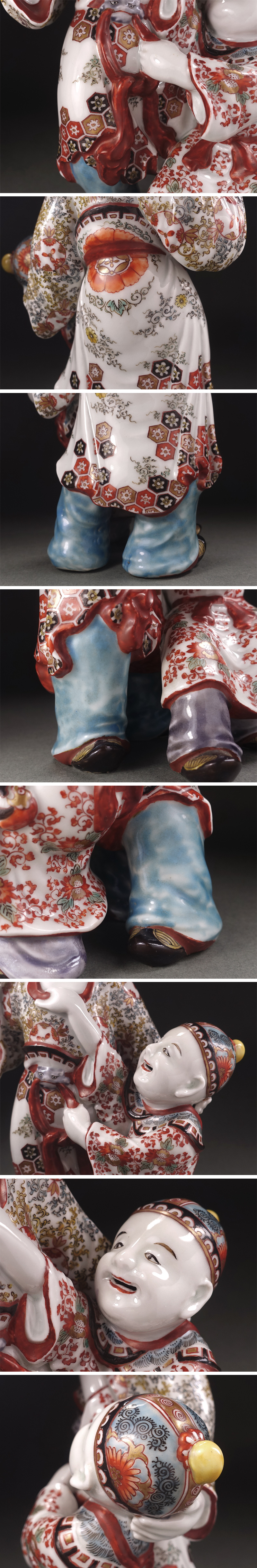 ∇花∇明治時代 倣古伊万里色絵人形(柿右衛門人形) 九谷焼色絵人形 色絵金彩唐子置物 唐子立像 高さ24cm 收藏