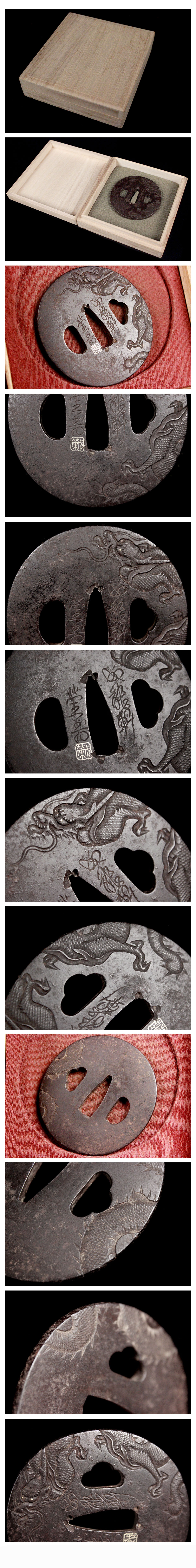 | 【喜楽】龍 在銘花押 鍔!! 刀装具武具!! 木箱 112176 | - |