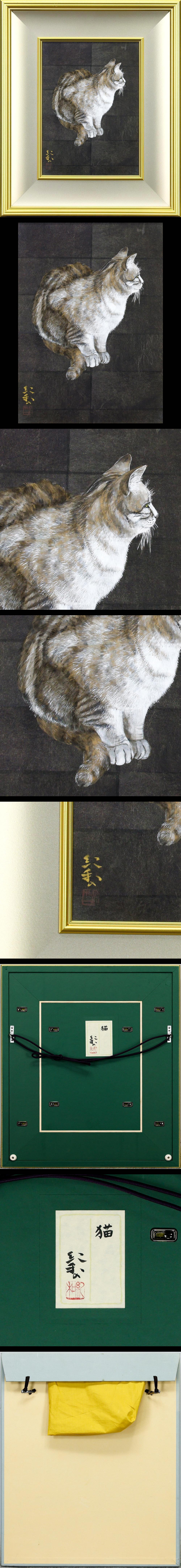 【真作】【WISH】鈴木紀和子「猫」日本画 4号 金落款 金泥仕様 共シール ◆愛らしい猫名画 〇院展人気画家 日本美術院院友 #25123026 收藏
