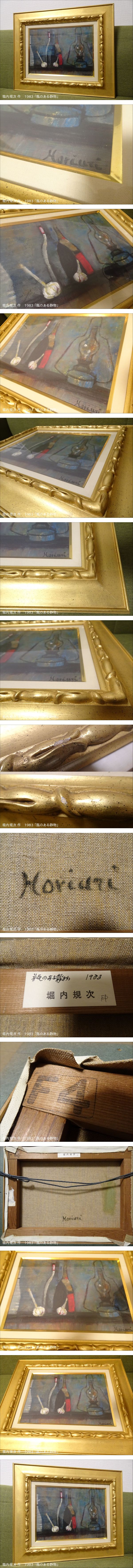 真作保証 堀内規次 作 1983 「瓶のある静物」油彩 F4号 アンティークゴールド額装 | ||||||||||