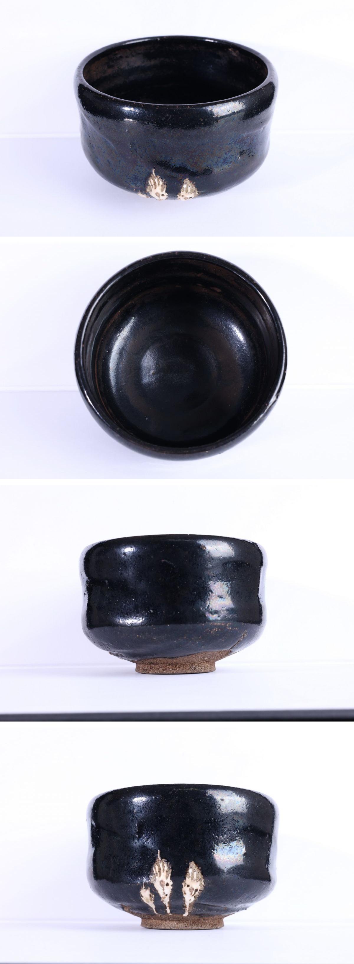 【珍品堂】1円から AB58A-D 楽焼 黒楽茶碗 お茶碗 細密細工 在銘 径11.5㎝ 茶碗 茶道具 和食器 日本伝統 工芸品 時代物 骨董品 古美術 希少 收藏