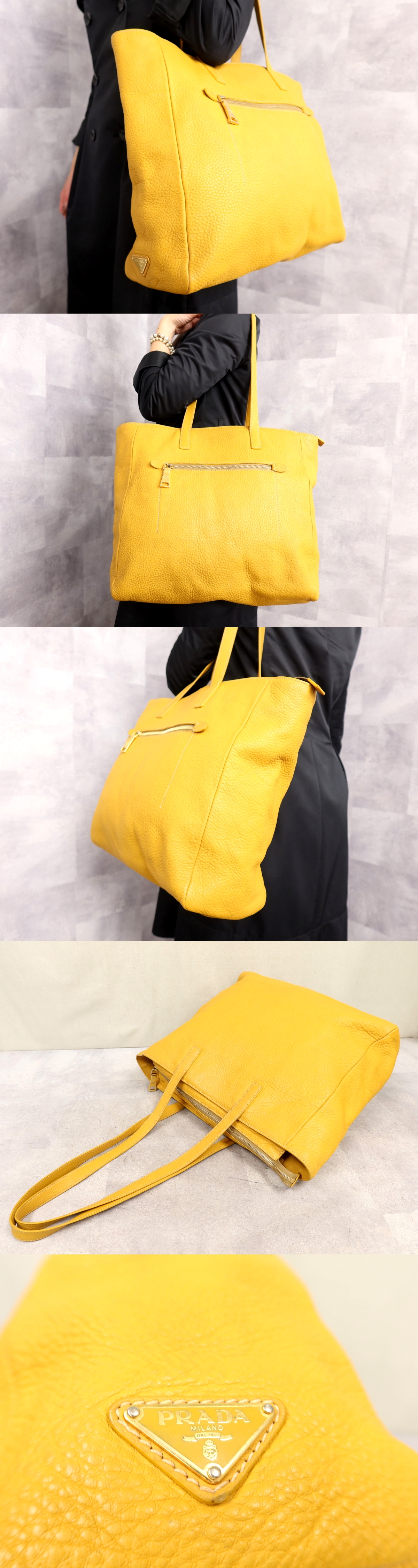 ●美品●PRADA プラダ●三角ロゴプレート●ディアスキン レザー 本革●ショルダー トート バッグ●マスタードイエロー●G金具●A4●Js64253 收藏