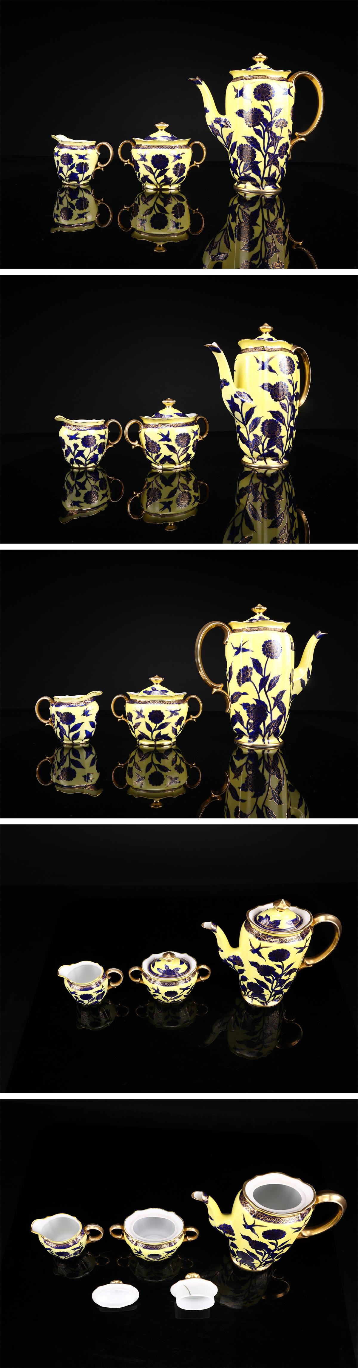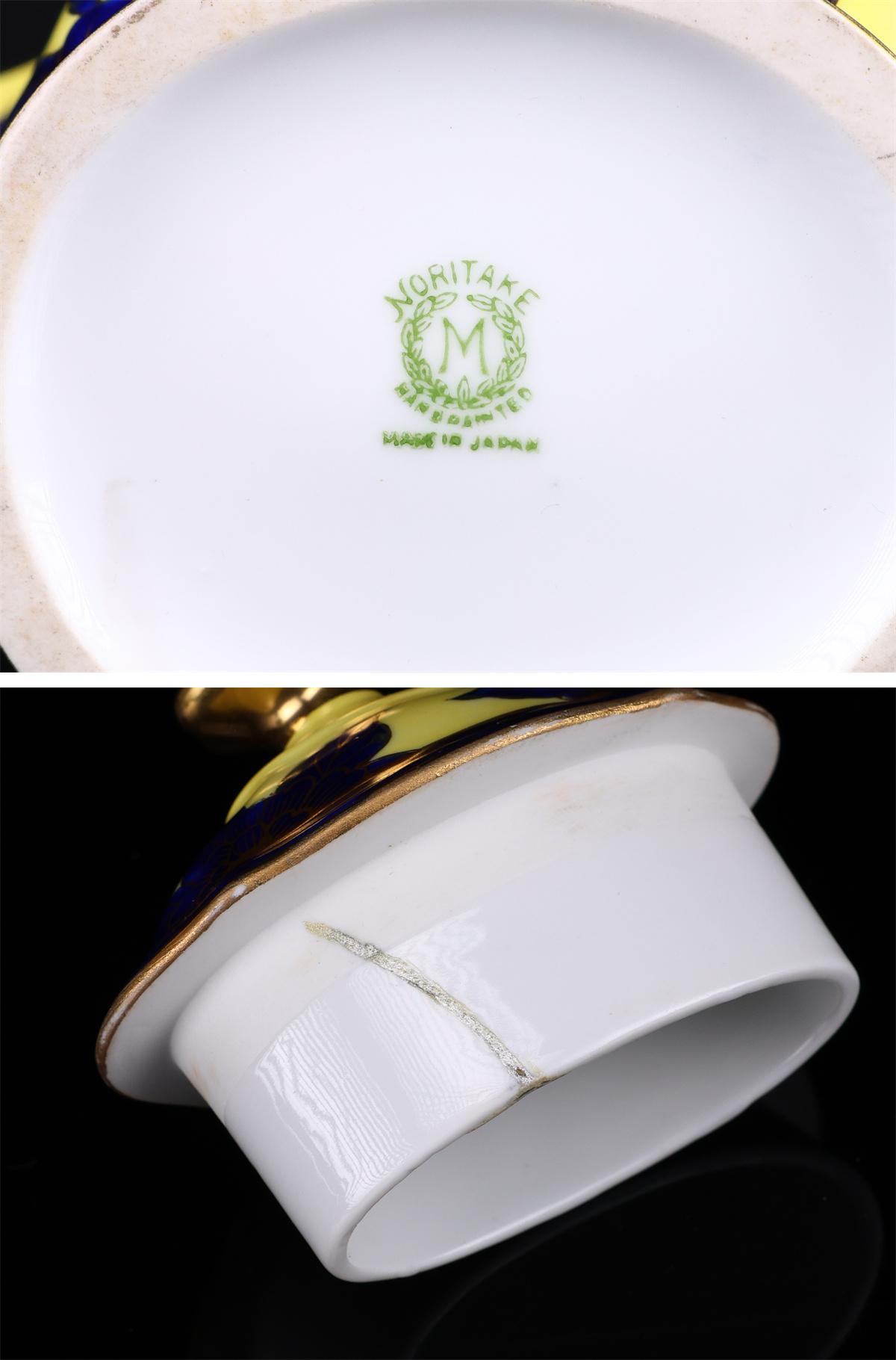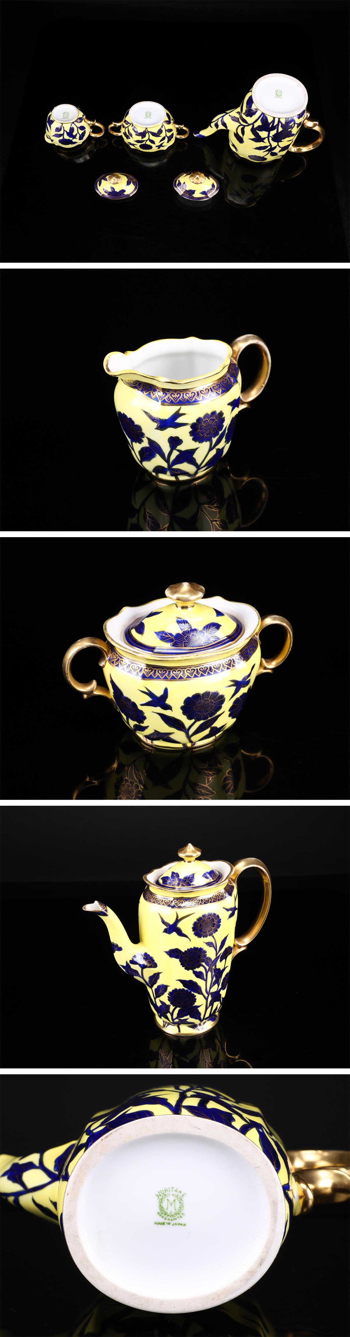 【吉】CO729 Noritake 【オールドノリタケ】 黄地瑠璃釉金彩 ティーポット シュガーポット ミルクポット 3点セット/時代の擦れやなおし 收藏