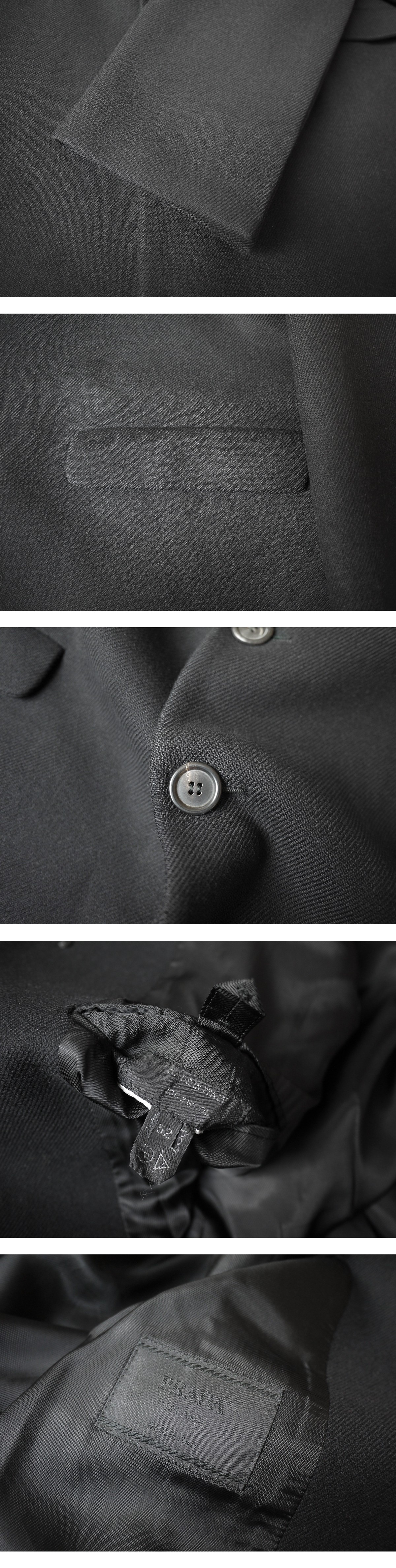 採用されるイタリアンウールメルトンは厚みもしっかりとありながらふんわりと柔らかく軽い質感で、デザイン性のみならず、着心地にも配慮された上質なファブリックです。シンプルなデザインだけに素材とシルエットのみで魅せる、イタリアトップメゾンならではの存在感を感じさせる逸品でございます。プラダのウールメルトンのチェスターはなかなか出回らないアイテムですので、この機会にぜひよろしくお願いいたします。
