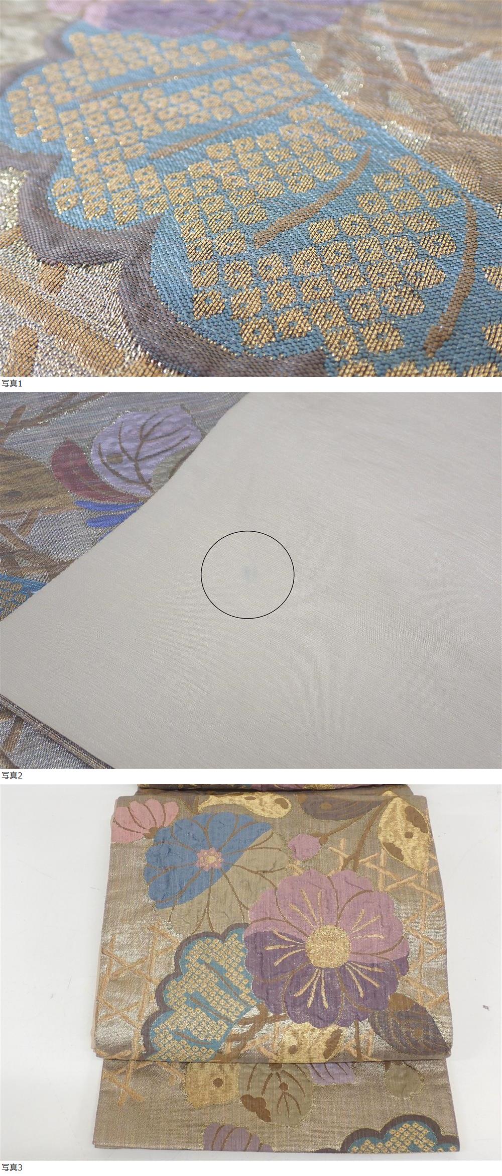 秀品 西陣 じゅらく謹製 ふくれ織り 袋帯 31.3cm×446cm 金糸 辻が花文 | ||||
