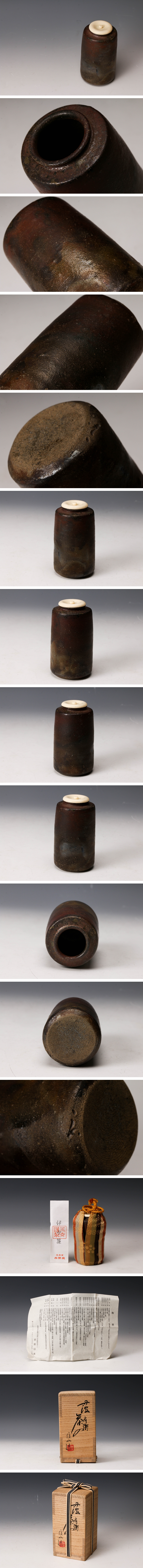 【佳香】市野信水 丹波肩衝茶入 共箱 仕覆(伊予簾) 栞 茶道具 本物保証 收藏