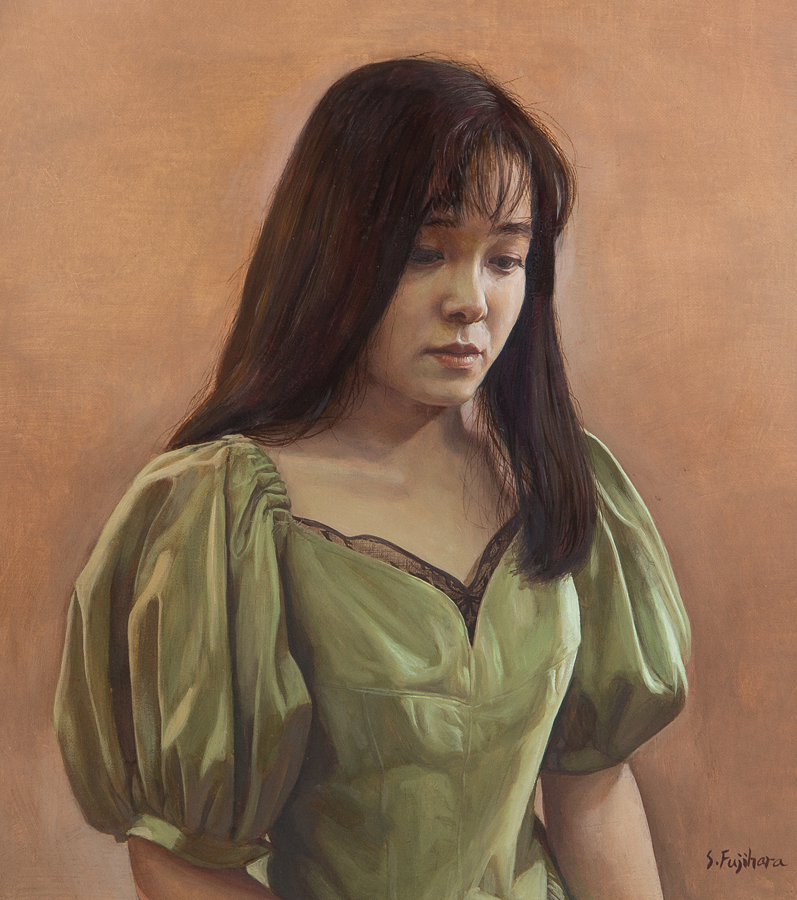 【1on1】真作 藤原秀一 『伏し目がちの・・・』 油彩 キャンバス 12号 額装 ■ 東京藝術大学大学院修了 リアリズム逸品 ホキ美術館収蔵作家 收藏