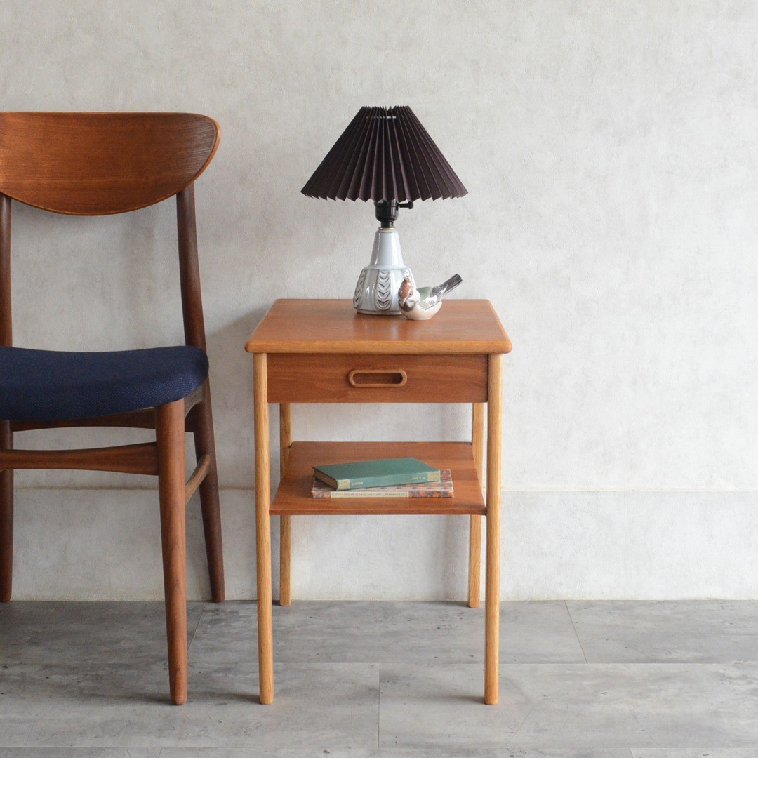 デンマーク 北欧ヴィンテージ チーク サイドテーブル 抽斗付 ナイトテーブル 北欧家具 オーク フルメンテナンス済 オイル仕上げ バイカラー 收藏
