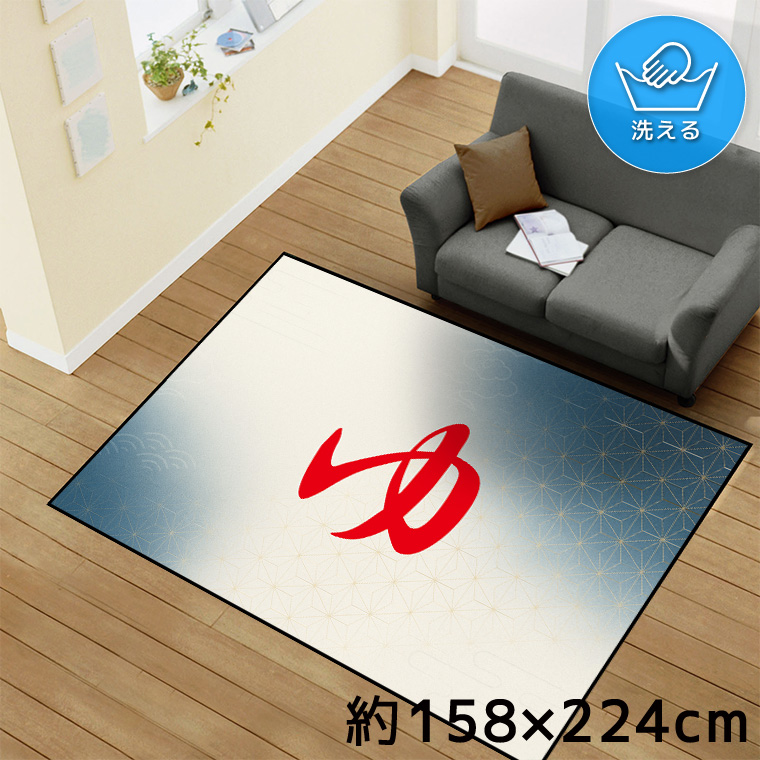 ラグ 洗える おしゃれ 3畳 約158×224cm カーペット リビング 寝室 転写プリント 温泉 風呂 入口 TEN170-E 和柄1 ゆ レッド 收藏