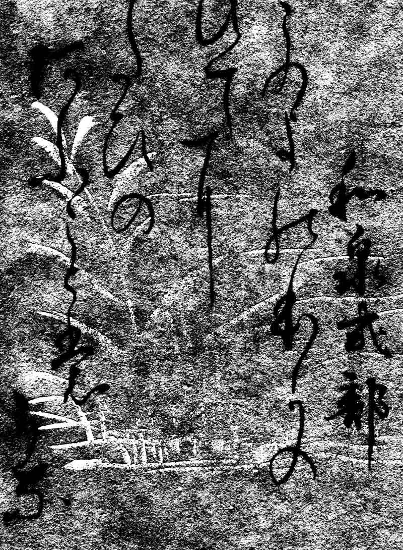 原本自筆上部には、「舟船(しゅうせん)の中に夜、琵琶を弾く者を聞く」《舟の中から夜、琵琶を奏でているのが聞こえてきた。》白楽天の元和十年(815年)江州での作。琵琶行という有名な漢詩です。