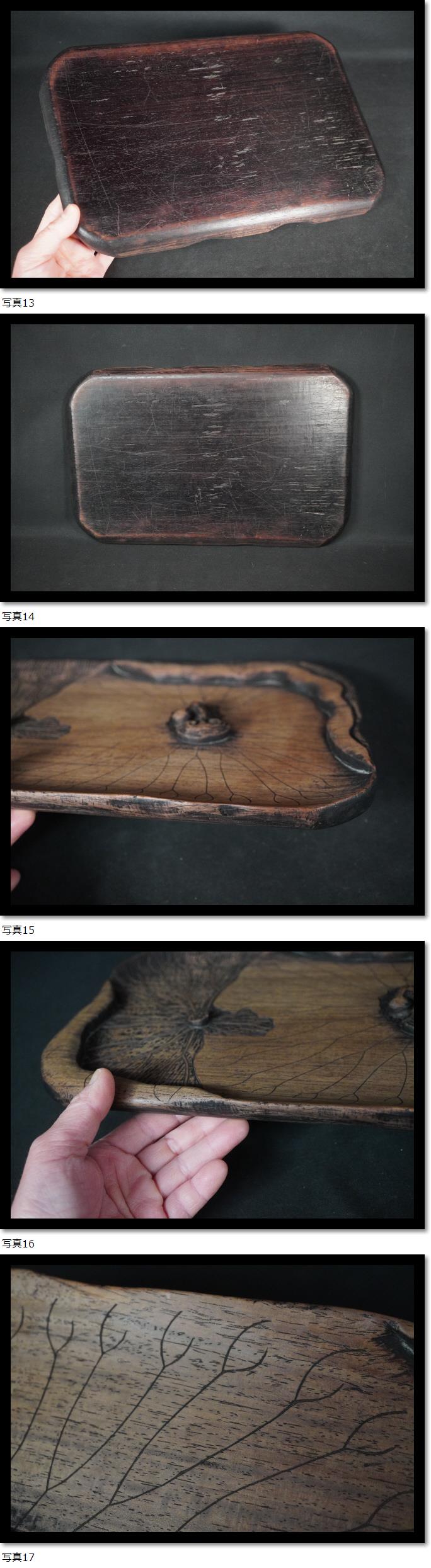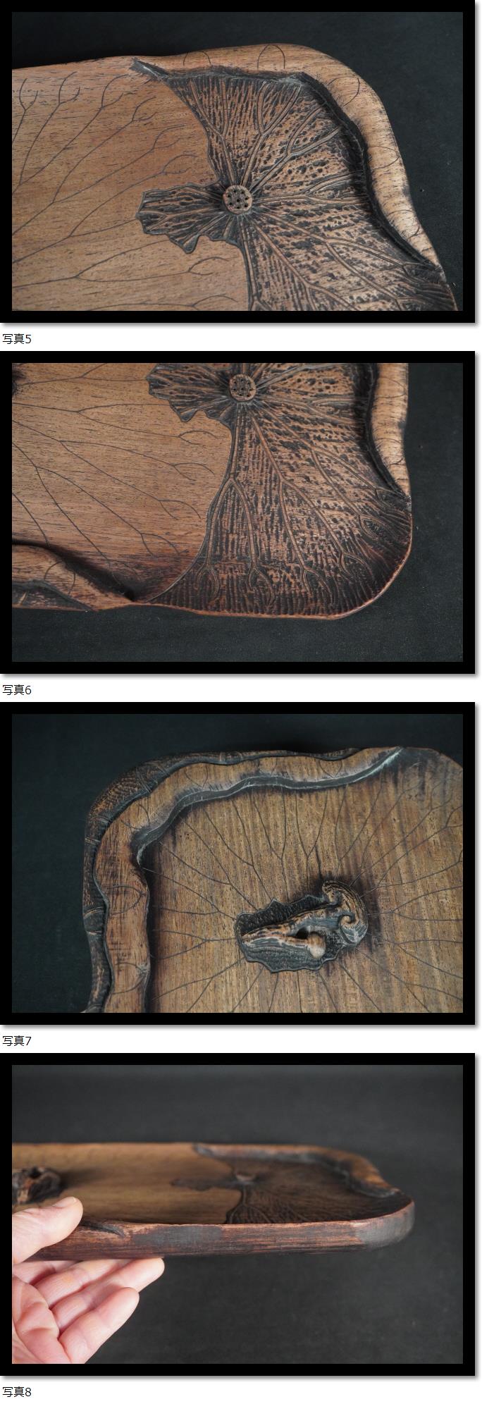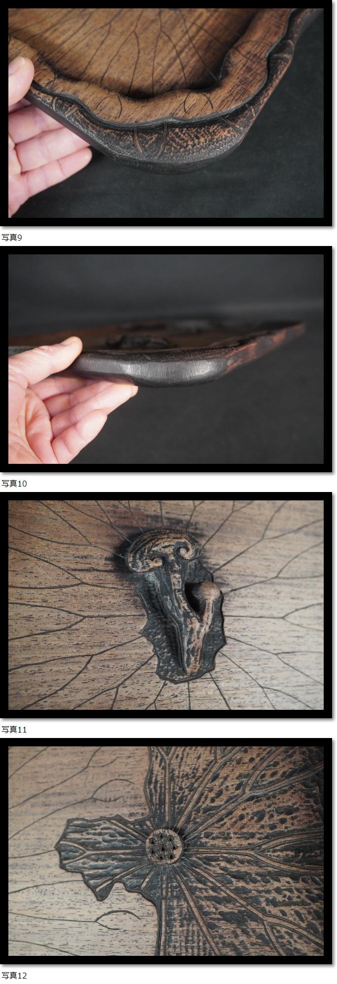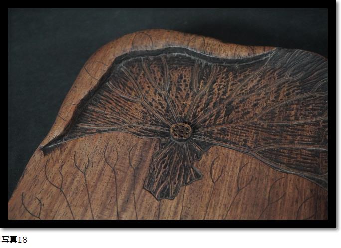 煎茶盆 蓮盆 霊芝 彫刻 木彫 中国美術 古玩 煎茶道具 茶室 唐木