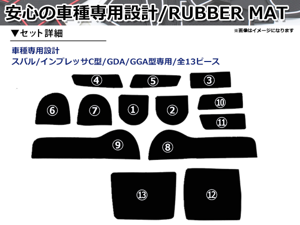 ドアポケット ラバー マット インプレッサ C型 GDA/GGA型 ブルー 13P コンソールボックス ドリンクホルダー シート 保護