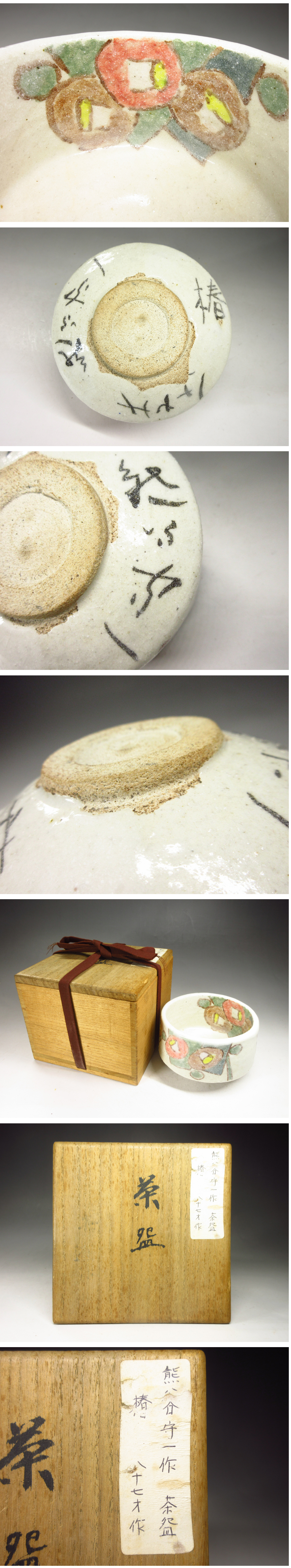 【漸】コレクター委託出品 画家『熊谷守一』自筆 椿絵茶碗 八十七才 晩年作 合箱 茶道具【HY3157】 收藏
