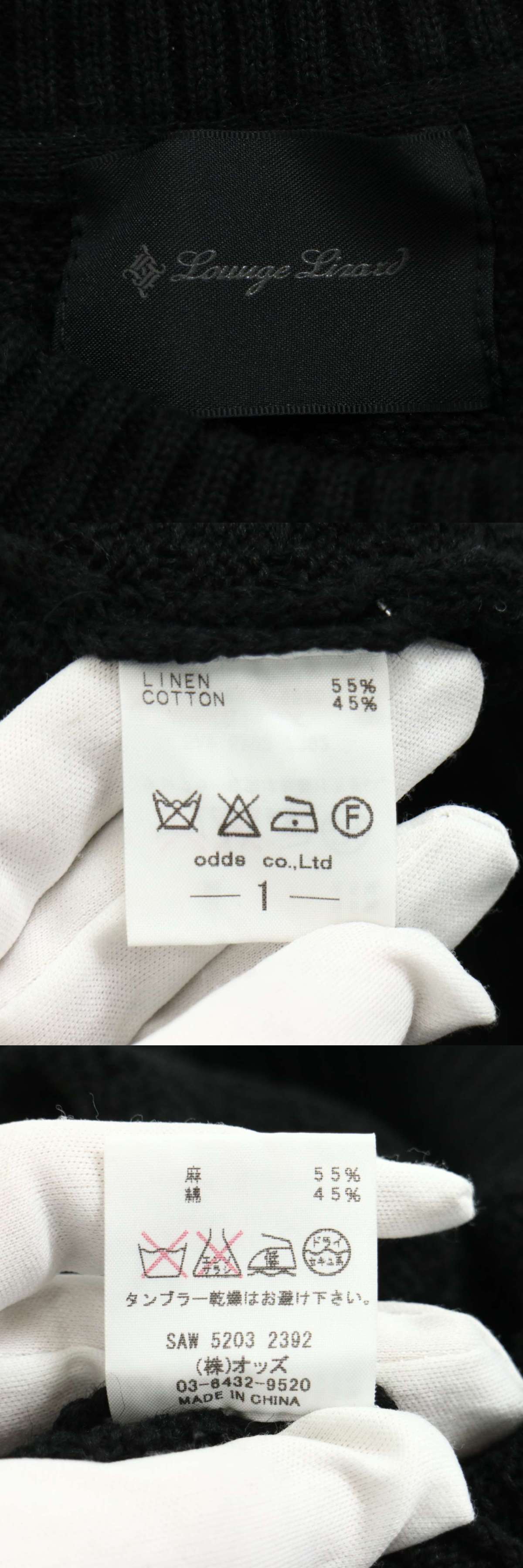 LOUNGE LIZARD ラウンジリザード 春夏★ 麻 リネン混 半袖 クルーネック サマー ニット セーター Sz.1 メンズ 黒 收藏