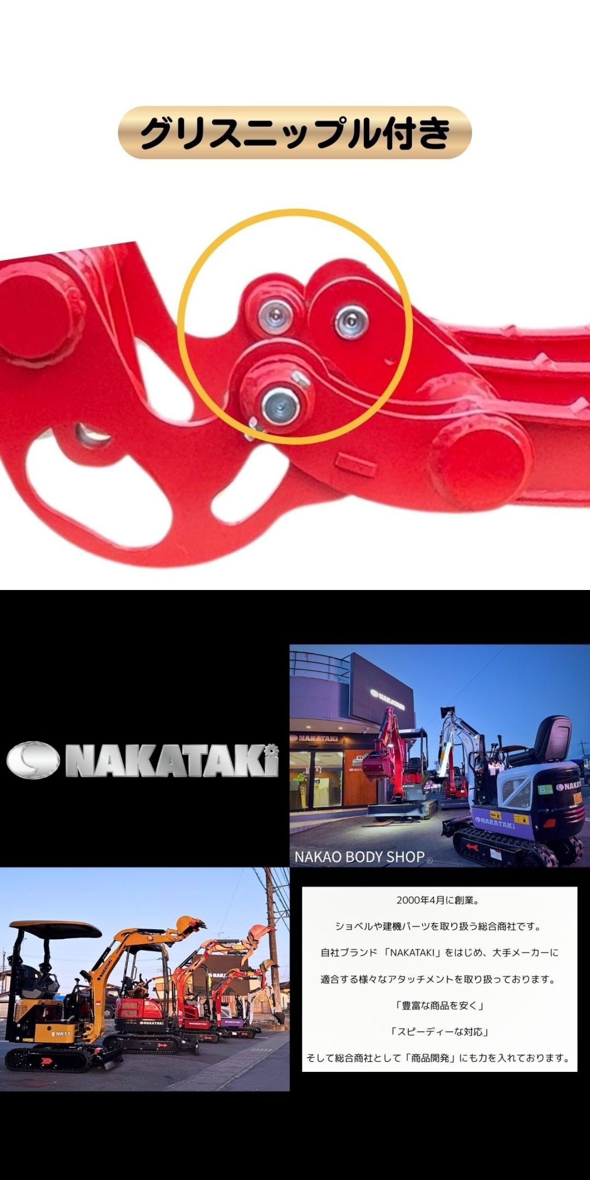 自社で企画開発され、国内で商標登録されたミニショベルをはじめ、大手メーカーに適合する様々なアタッチメントも取り扱っております。