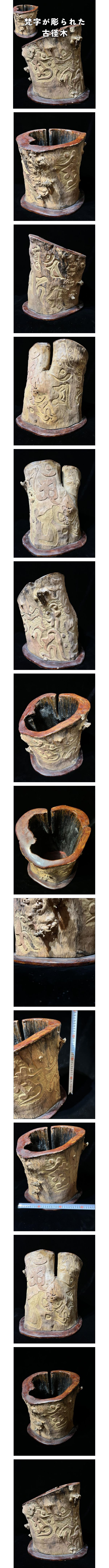時代 古径木 卍字 梵字が全体に彫られた天然木 密教 [検] 筆筒 中国美術 唐物 蔵出 仏教美術 蝸牛彫 瘤頭 杖検 竹彫 密教 仏画 曼荼羅 花台 收藏