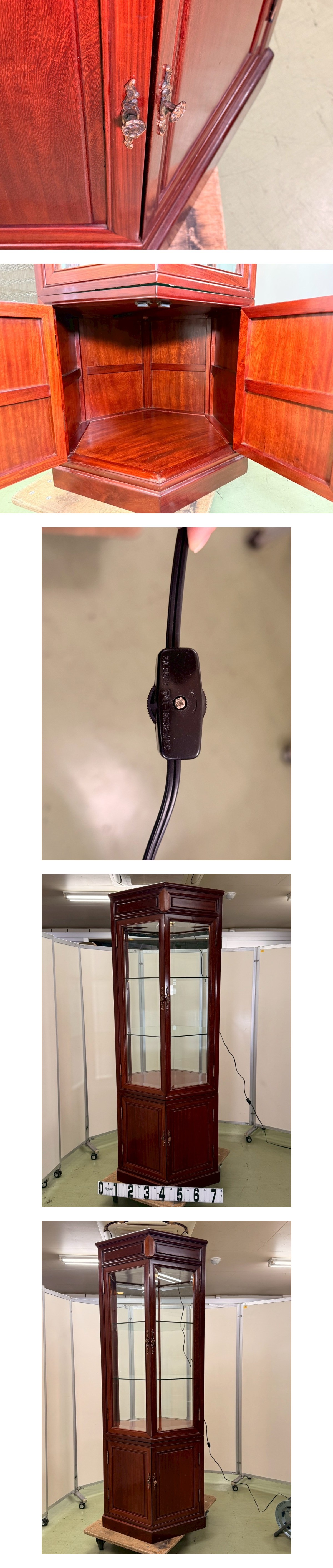 英国アンティーク調 ガラスキャビネット 六角 飾り棚 コレクションケース ダウンライト付 クラシック ヨーロピアン 豪華 上品 收藏
