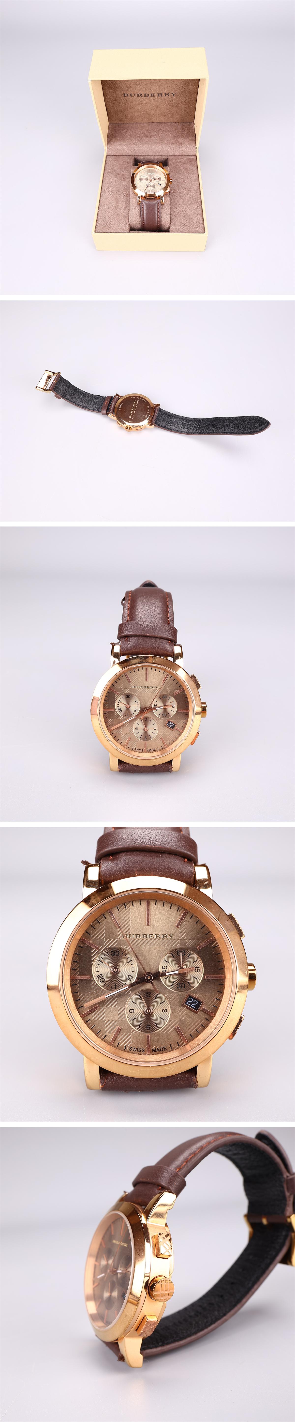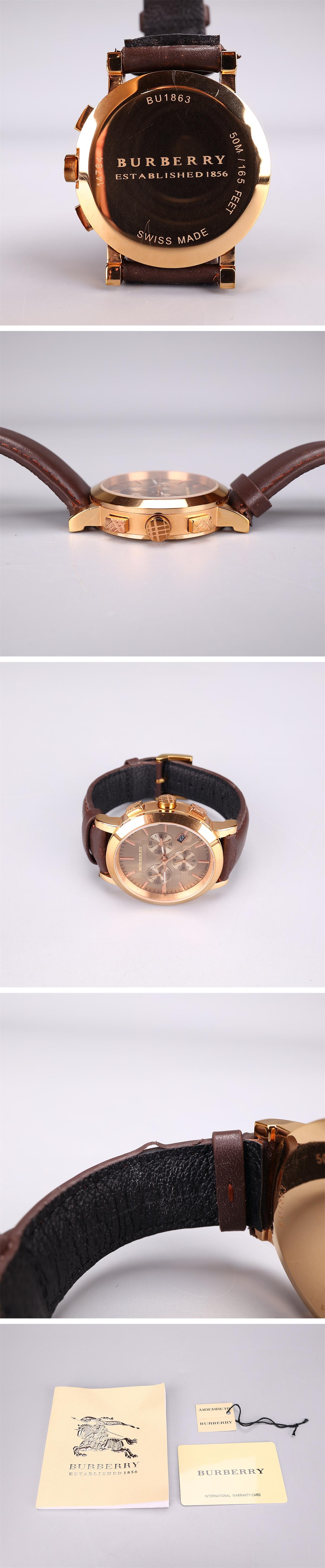 【吉】ZE078 バーバリー BURBERRY クロノグラフ メンズ腕時計 BU1863/共箱付 稼働品N! 收藏