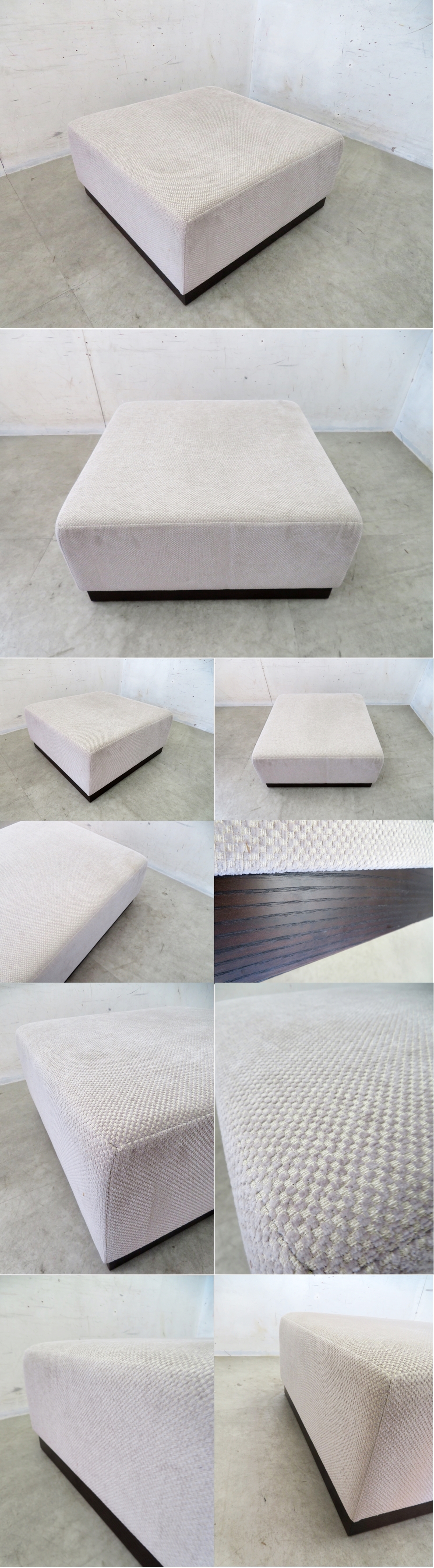 落ち着いた上質感を纏う、モダンデザインのスクエアスツールです。 端正なスクエアフォルムと低めのプロポーションが印象的で、 シンプルでありながら空間に静かな存在感をもたらします。 張地には細かな織り目が美しいファブリックが用いられており、 やわらかなベージュ系のカラーが上品で温かみのある雰囲気を演出。 どの角度から見てもすっきりとしたラインが保たれ、モダンインテリアに自然と溶け込みます。 程よいクッション性のある座面は、スツールとしての使用はもちろん、 オットマンやサイドシートとしても活躍。 低めの設計により圧迫感が少なく、リビングやラウンジ、 ベッドルームなど様々な空間で使いやすい一台です。 ベース部分のダークカラーとのコントラストが全体のデザインを引き締め、 ミニマルながら洗練された印象に仕上げています。 シンプルだからこそ長く愛用できる、上質なモダンスツール。 単体でも、ソファと組み合わせても美しく映える、使い勝手の良いインテリアアイテムです。 大変おすすめですのでこの機会にぜひ!!! コンディション:モデルルーム展示品の為、写真の様な傷、汚れがありますが、その他は大きなダメージはなく美品です。 サイズ横85センチ奥行き85センチ高さ38センチです。