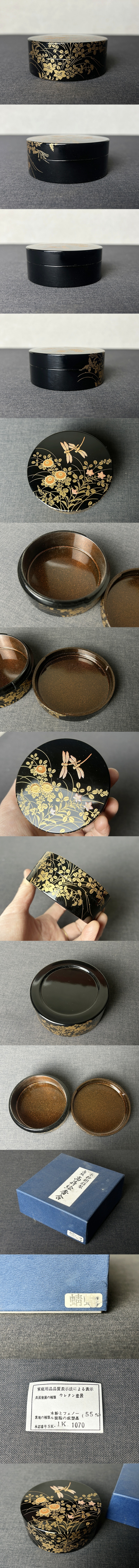 高級 高蒔絵香合 木粉樹脂製 紙箱◇蜻蛉/花草/香道具/茶道具/仏具/香入/蓋物/漆器/漆芸/時代/骨董/和小物 收藏