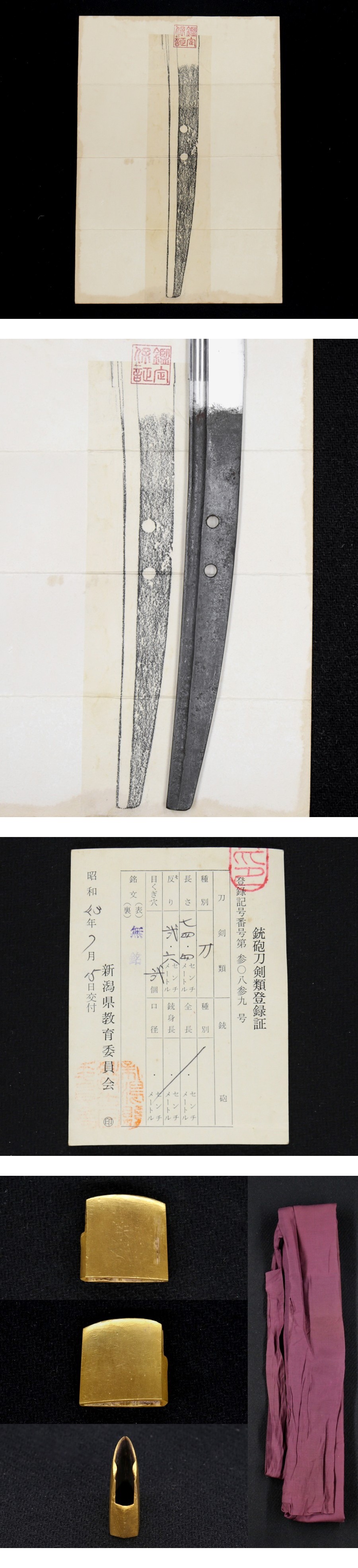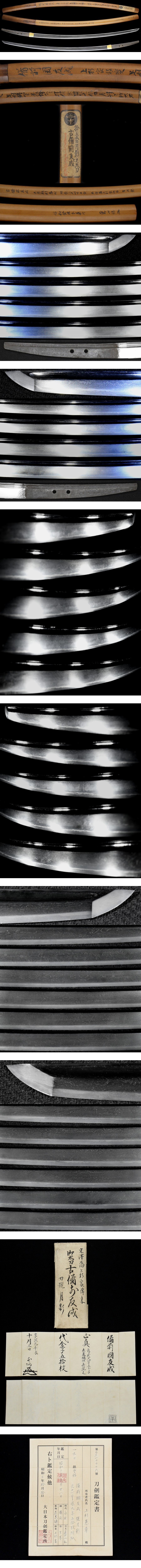 刀剣鑑定所の鑑定書が付属し所有者は当時の上杉家当主であった上杉憲章と