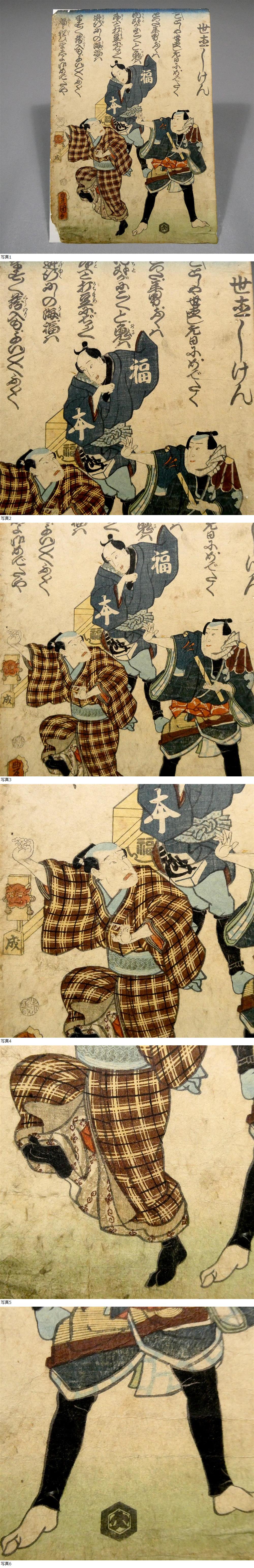 初代 歌川国貞◆年男 招福の図◆江戸時代 木版浮世絵◆「世直しけん」福々祝いましょ 御めでたや■豊国三代■歌麿 北斎 広重 国芳 錦絵 18 收藏