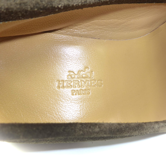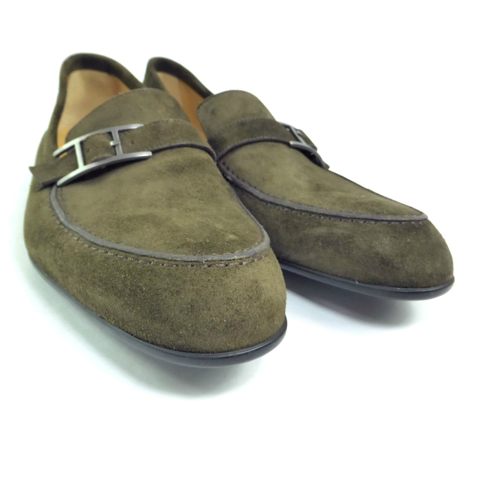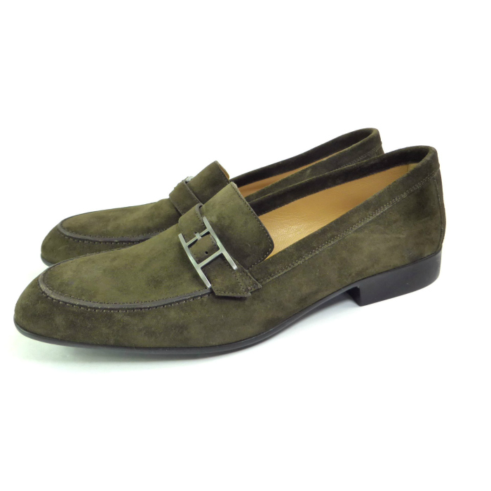 | エルメス(HERMES) スエード ローファー レザー シューズ 靴 #40 カーキ メンズ ソルド品(中古) |