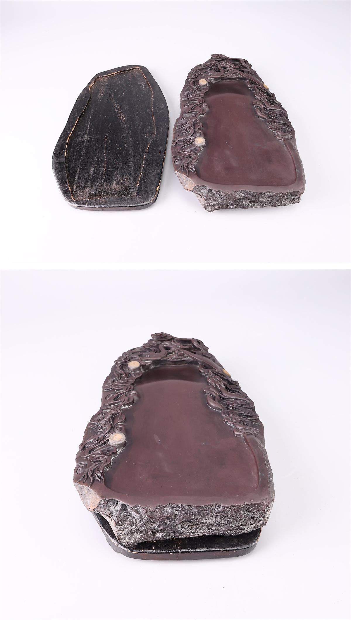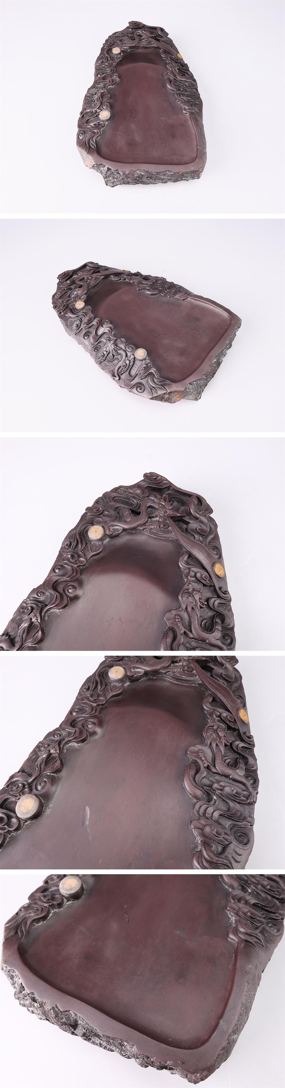 【吉】BB477 唐物 【天然端渓石製】 書道具 龍紋 端渓硯 幅30×20㎝ 重5128g/美品I! 收藏