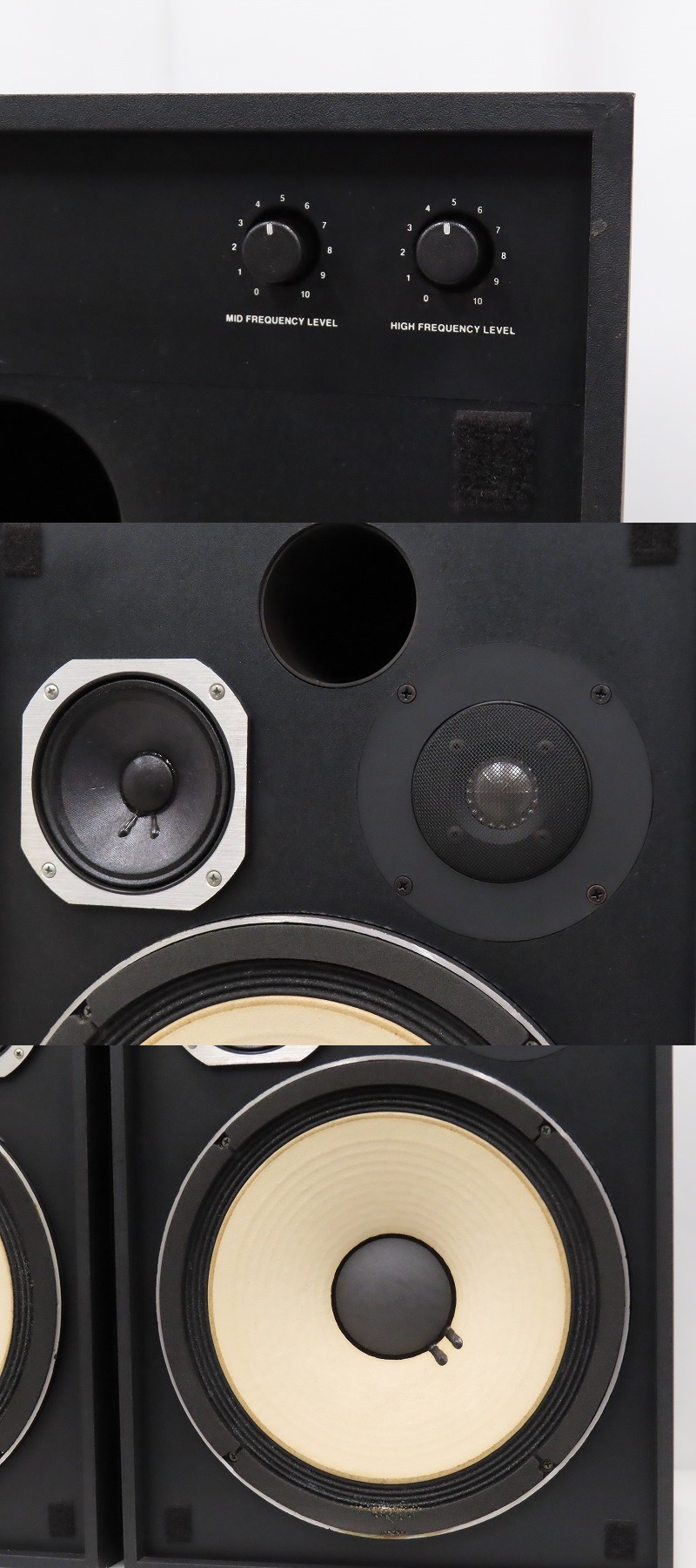 ■メーカー : JBL ■型番 : 4312A ■外径寸法 : W365×H600×D300mm ■重量 : 20.6kg ※弊社実測の為、多少の誤差はご了承下さい。 ※ペアでの出品となります。 【商品の状態 当店での確認内容】 音声出力は確認出来ておりますが、MIDダイヤルに接触不良がございます。 片方のサランネットに当店では落としきれない汚れがございます。 ※上記により【難あり商品】としての出品となります。 「商品の状態」に関しましては当方主観の目安となります。外観などは中古品で個人差もありますので詳細は画像にてご判断ください。 画像にて不明な点はご質問下さい。 出品商品は画像のものですべてになります。画像に写っているもの以外は付属いたしません。 【送料 全国一律 7,200 円 沖縄、離島は別途お見積り】 ※送料がお得になるサービスです(下取りシステムのご案内です) ストア決済利用時にクレジットカードやPayPay残高/PayPayクレジットを利用の方は留意点がございますのでこちらを参照上ご利用ください。 当ストアでは商品を安全にお届け出来るよう提携運送会社と協議の上、発泡緩衝材や強度段ボールの使用等 運送会社が指定する梱包方法や資材を採用しております。 より安全にお届け出来るよう商品仕様により梱包サイズが大きくなる場合や個口数が増える事がございます。 【当ストアオークションルールを入札前に必ずご確認ください。】 【落札後の取引手順】 ・落札後は取引ナビにて、必要事項をご入力後、送信ください。 取引終了後48時間(土、日は除く)以内に入力をお願い致します。 ※ご連絡が頂けない場合は落札者様都合でのキャンセルとさせていただきます。 ・落札代金(商品代金+消費税+送料)の入金をお願い致します。 ※大型商品の場合は送料確定後の決済となる為取引ナビを入力頂き、当ストアより送料のご案内が来るまでお待ちください。(土曜、日曜、祝日の場合は翌営業日より順次ご案内いたします) ・お支払い方法はクレジットカード/PayPay残高/PayPayクレジット/PayPay銀行/ゆうちょ銀行のみです。 ※商品代金引換(代引き)のお取り扱いはしておりません。 ※領収証の発行が必要な方はご連絡ください。 ※銀行振込の際の振込手数料はご負担願います。 ・入金確認後に出荷手配を致します。 (原則入金確認後3営業日以内に発送いたしますが、大型や重量のある製品はお時間をいただく場合もございます。) ・発送は当店指定の運送会社の元払いのみでの発送となります。 ※他の運送会社、送料代引き等は致しかねます。 ※落札者様ご自身での運送会社の手配いただく事も可能ですが荷物事故の責任の所在の問題上、梱包は致しかねます。 ※店頭にお越し頂き手渡しも可能(福岡市早良区)です。ご希望の方はご落札後にご連絡下さい。 ・大型/重量物商品の送料につきましては商品の特性上、荷降ろし状況等により送料が大きく前後し運送業者に別途見積りが必要な為、早めのお問い合わせにてお見積り上、入札をお願い致します。 【初期不良の保証について】 ・商品到着後の初期動作不良、また配送中の事故による破損、不具合が有る場合は、商品発送後10日以内に当ストアまでご連絡ください。当ストアでは修理での対応を優先させて頂きますが、修理不可の場合は全額返金させて頂きます。 (商品代金+消費税+送料のお支払い頂いた金額となります) 【初期不良の保証の対象外について】 次の場合は保証の対象外となりますのご留意ください ・ジャンク商品、現状商品、難あり商品での出品商品。 ※難あり商品に関しましては動作確認時に一部動作不良が確認された商品になり、記載している動作確認以外にも、動作不良がある可能性もございます。こちらに関しましても保証対象外となりますことをご理解ください。 ・年代物のオーディオなどで、当店にてわからない範囲で部品が交換されている場合 ・楽器類の特殊機材(マイクロスコープ等)での確認までは行っておりません。気になる方は事前にご質問いただくか、入札をお控えください。 ※初期不良に関しましては【商品の状態】に記載のもの、またそれによって起因する動作不良は対象外です。 ※商品発送後10日を過ぎてのご連絡は対応が出来ませんので、商品が到着しましたらお早めに確認をお願い致します。 【メーカー保証の加入・継承】 ・未使用品、展示品やメーカー保証期間が残っている商品に関しまして、メーカー保証の加入、継承が必要な方は、落札後取引ナビ内にて当ストアにお知らせください。商品発送までにご連絡いただけない場合、メーカー保証の手続きを承れない場合があります。 【評価について】 ・評価不要の場合、必ず取引ナビの「要望欄」にてお知らせください。それ以外でご連絡をいただいた場合、対応できない可能性がございます。一度行った評価はシステム上取り消しが行えませんのでご了承ください。 【入札削除・キャンセルについて】 ・入札後はトラブル防止の為いかなる事情がおきましても入札を削
