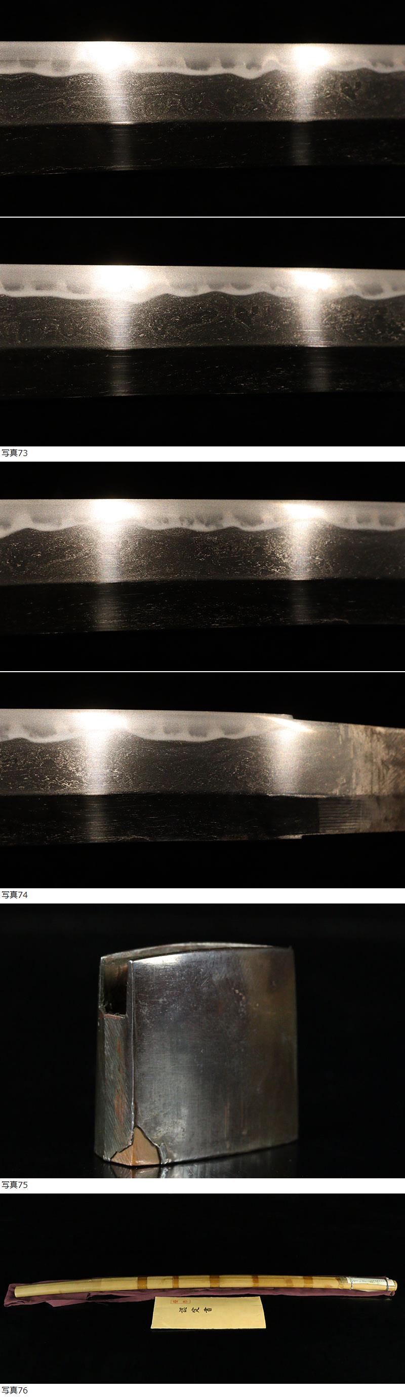 | ■刀剣のサイズ表示について 元幅・・・焼出し付近を測定しております 先幅・・・横手筋付近を測定しております 元重ね・・・焼出し付近の厚みを測定しております 先重ね・・・横手付近の厚みを測定しております (多少の誤差はご容赦ねがいます) ■銃砲類のサイズ表示について 全長・・・銃身先から台木尻までを測定しております 銃身・・・台木を除いて金属部分を測定しております (多少の誤差はご容赦ねがいます) 当社が出品する刀剣類は、入手した時の状態のまま出品しております。 ハバキ、小道具等も当社で調整したり付け替えたりはしておりませんので、合わせではないかというクレームは一切受け付けません。 刀身の疵も隠すことなく載せておりますので写真をよくご覧になってご入札ください。 疵に関して、説明がない等のクレームは一切受け付けません。 写真ではわかりにくい部分は質問欄やお電話でお問い合わせください。 但し、説明欄に表記のない刃切れに関してのみ返品やご相談に応じます。 ※ご落札しご購入されお手元に届いてから20日以内に 登録証に記載されている各都道府県の教育委員会にご連絡し 登録証の所有者変更を必ず行ってください | |||