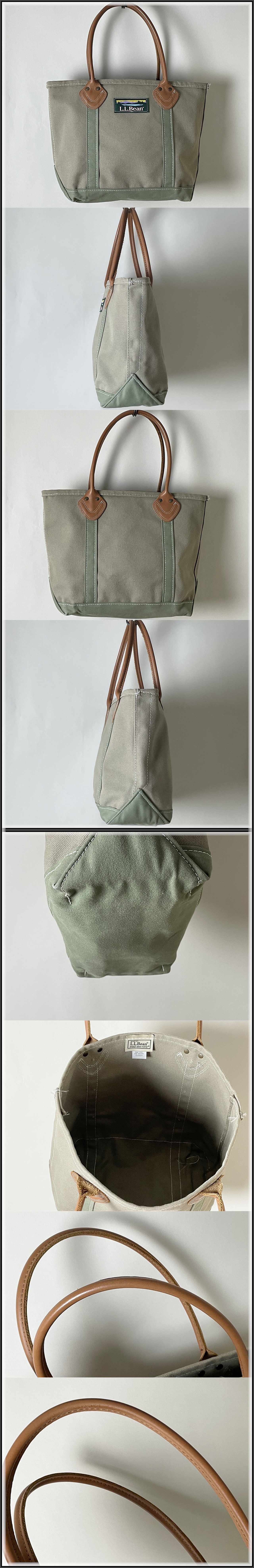 ブランド名:L.L.Bean エル・エル・ビーン LLビーン サイズ 横幅上部約41cm 横幅下部約30cm 縦幅約30cm マチ約14.5cm 持ち手50cm程度です。 USA製 色:ライトブラウン系×ライトカーキ 正規品の本物の商品です。 定価26,400円 素材:コットン100%等 ※ハンドル部分はレザーです。 状態はUSEDです。 ※底の4箇所のすみに若干のスレが見られます。 ※内側に若干の汚れが見られます。 ※レザーハンドル部分に若干のスレが見られます。 ※主だったダメージ等は見られません。 ※使用回数が少なめの比較的良好な状態と思われます。 多少の見落としはご容赦ください。 人気が出ており、入手困難なレザーハンドルトートバッグです。 定番と言えるトートバッグが有名ですが、こちらはレザーハンドルでキャンバス地や配色の切り替え等が絶妙なバッグです。 耐久性も非常に高いです。 定番のトートよりも人と違ったアイテムをお探しの方にお勧めいたします。 アウトドアブランドながら、一流品のバッグとも評される万人に愛されるブランドで、ヴィンテージウエアには抜群の合わせやすさですし、モード系の外しとしても使えるバッグです。 現在ではほとんど見つからない一品です。 1点のみの早い者勝ちです。 |