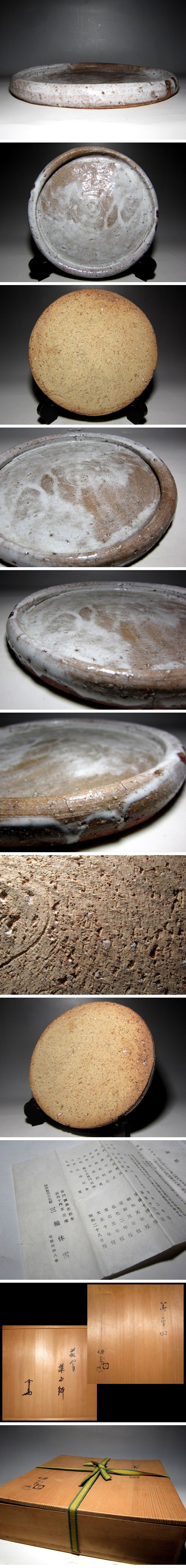 人間国宝 十代 三輪休雪 萩焼菓子鉢 裏千家十四代 淡々斎花押 m280 收藏