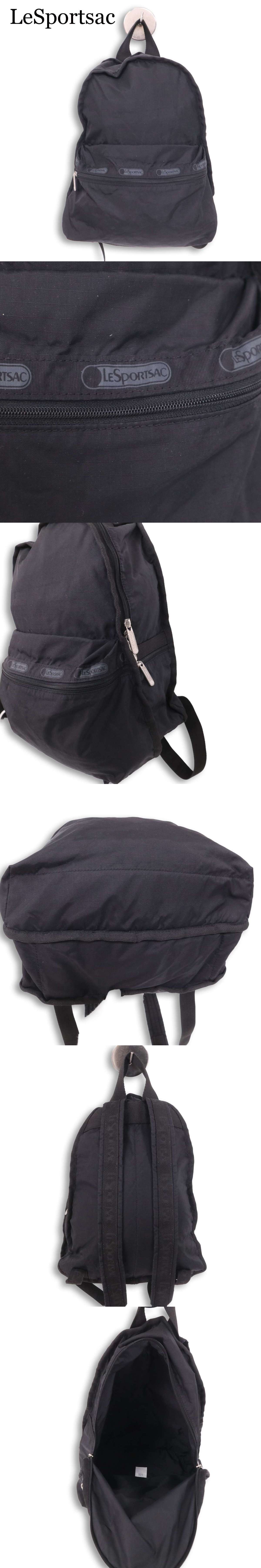 LeSportsac レスポートサック 通年★ ナイロン ロゴプリント ジップ リュックサック デイパック Sz.F レディース 黒 收藏