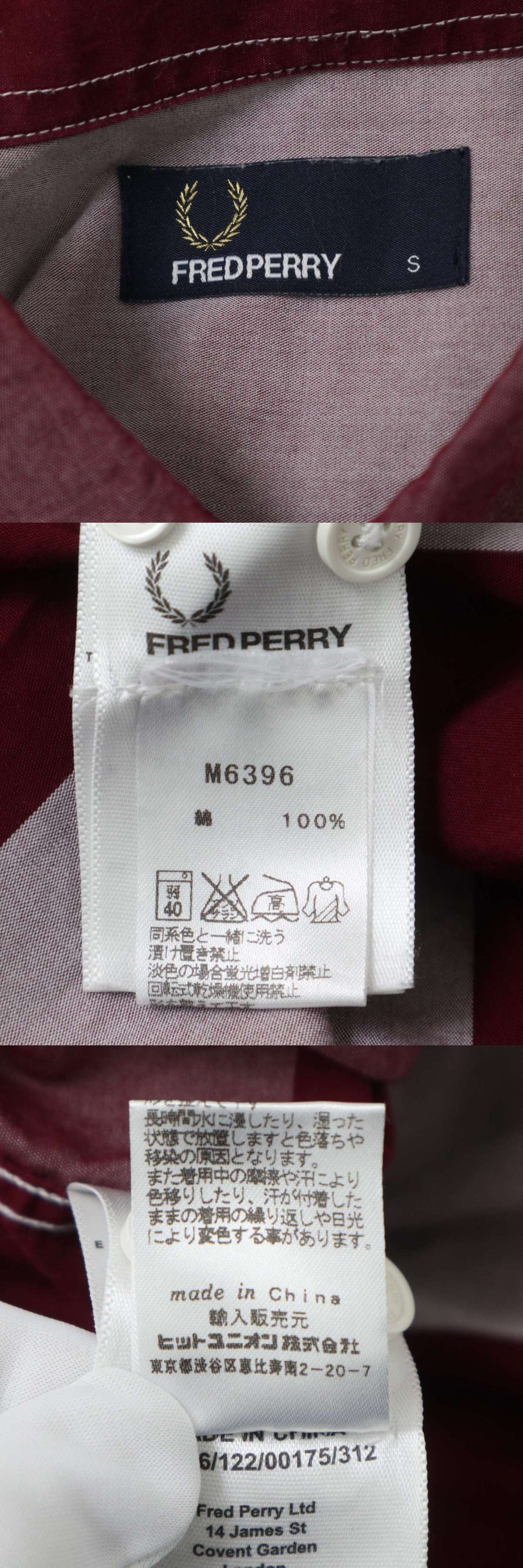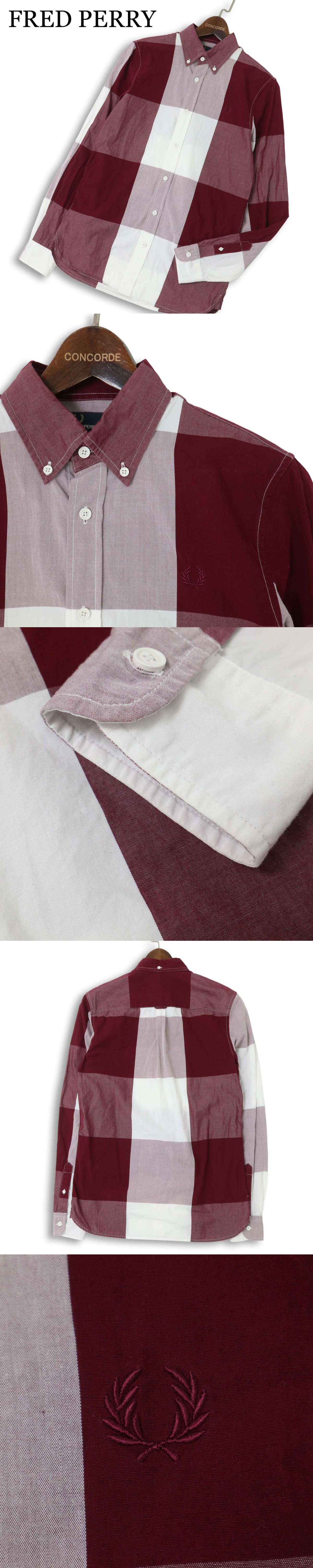 FRED PERRY フレッドペリー 通年★ 長袖 大判チェック 切替 ロゴ刺繍 ボタンダウン シャツ Sz.S メンズ 收藏