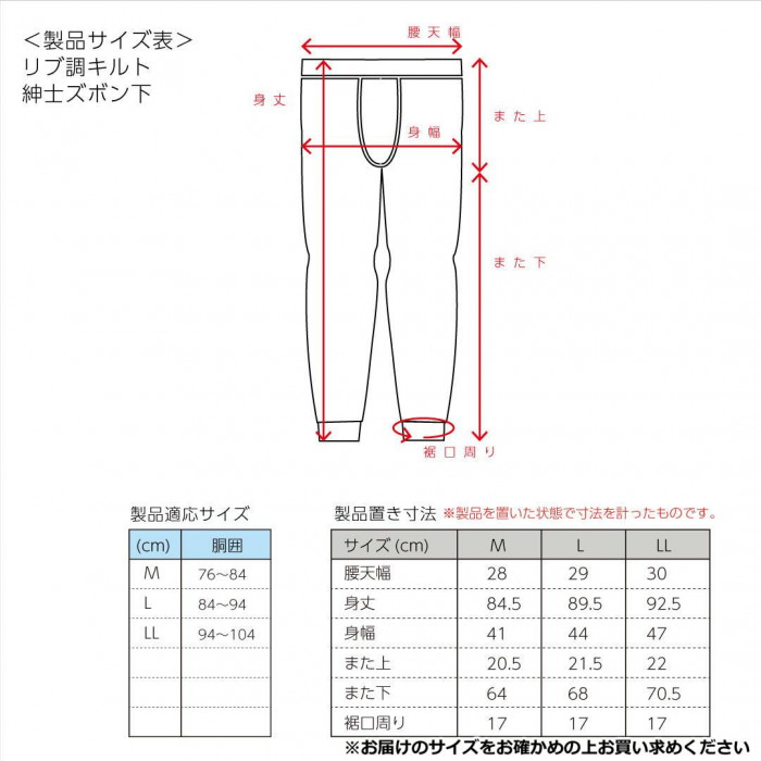 ビビエルボ メディロン リブ調キルト 紳士ズボン下 L 3326 收藏