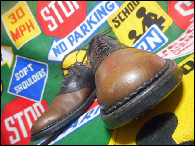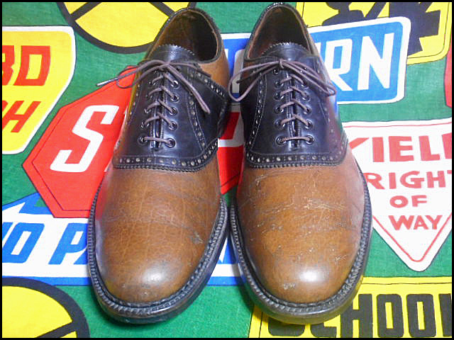 ★ダブルコバ★USA製米国製ビンテージツートン切り替えレザーシューズサドルシューズ黒×茶ブラック×イエローブラウン10 1/2C~28cm相当 收藏