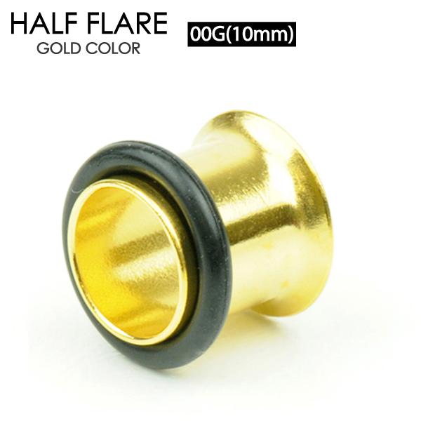 ハーフフレア ゴールドカラー 00G(10mm) アイレット サージカルステンレス316L シングルフレア ボディーピアス GOLD イヤーロブ 00ゲージ