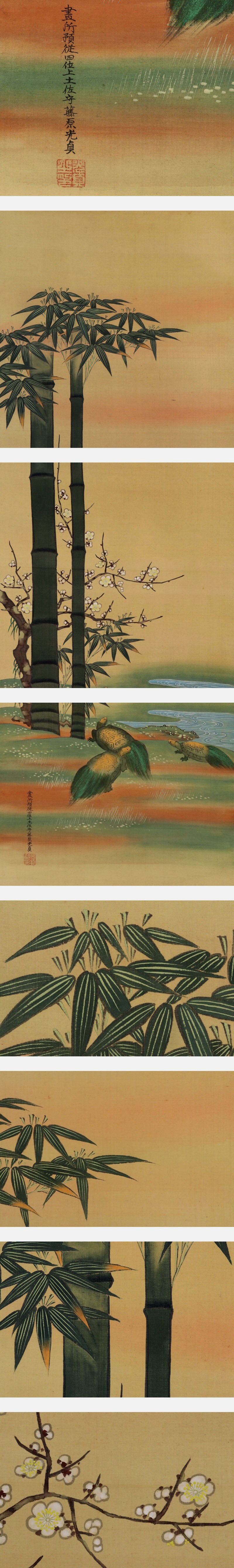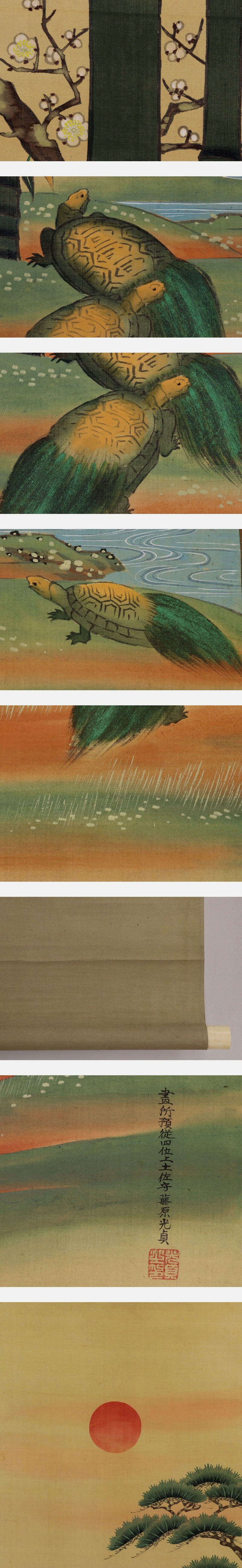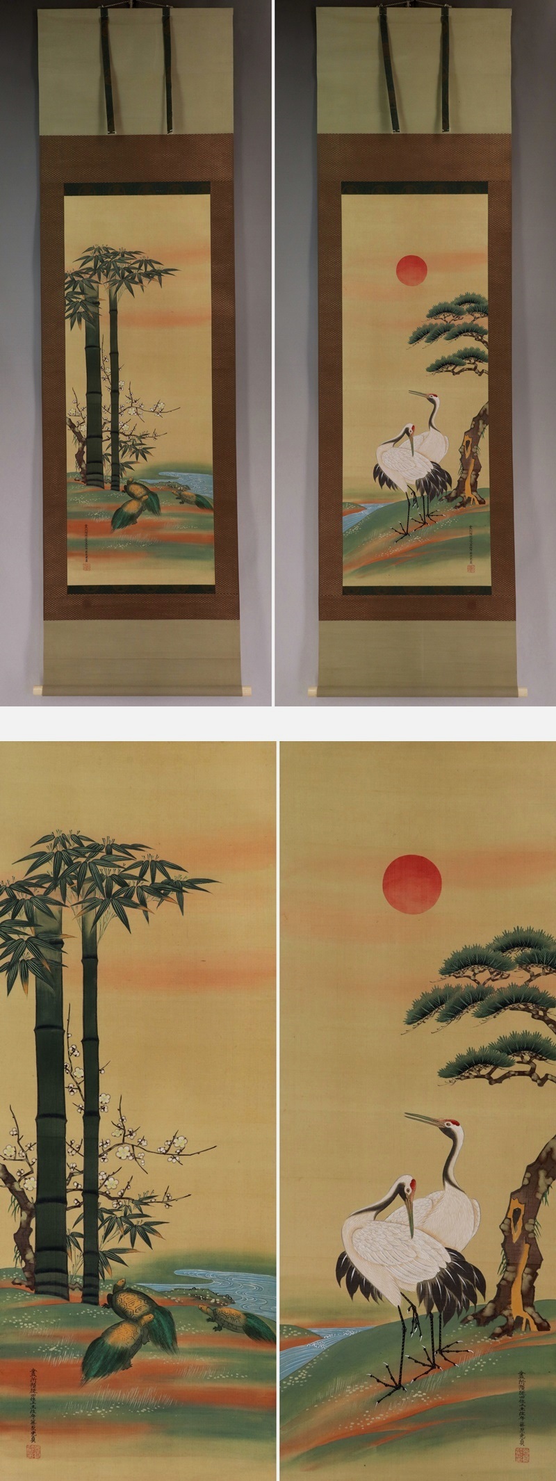 | №2112098【真作】土佐光貞【双幅・慶祝図】◆絹本◆合箱◆掛軸 | |