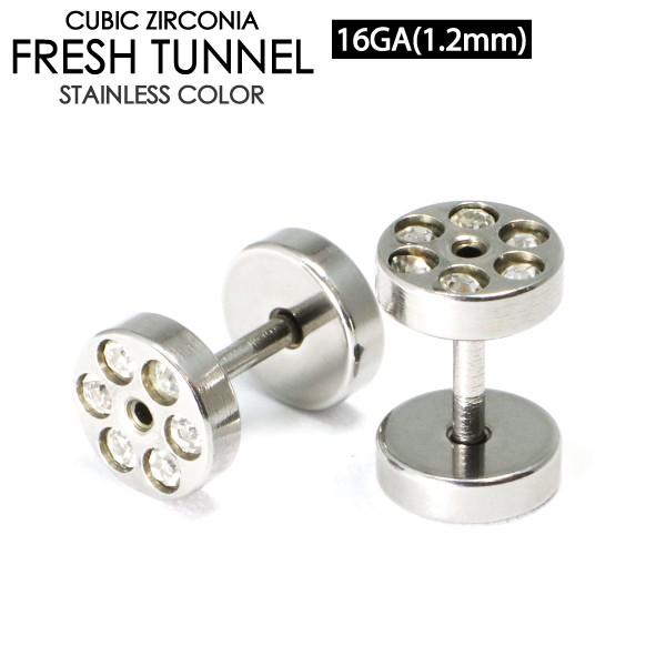 フレッシュ トンネル ラインストーン仕様 16G(1.2mm) サージカルステンレス316L ボディーピアス ジュエル付 ゴージャス イヤーロブ 16ゲージ